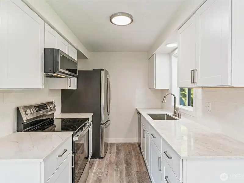 - Fully remodeled kitchen with quartz counters