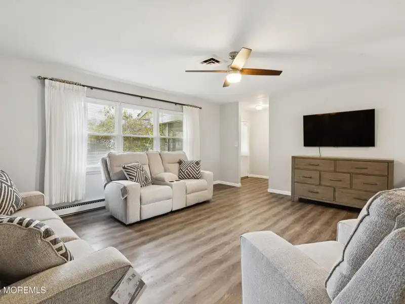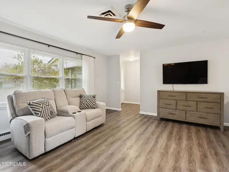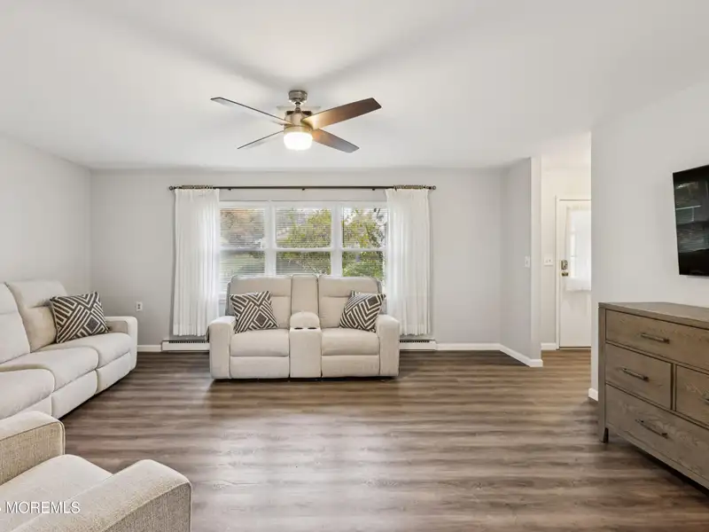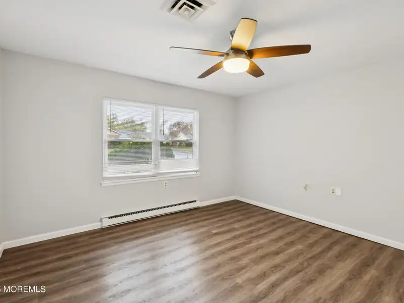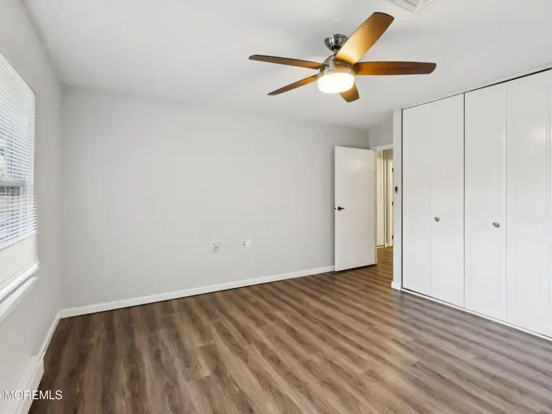 - Neutral laminate flooring installed