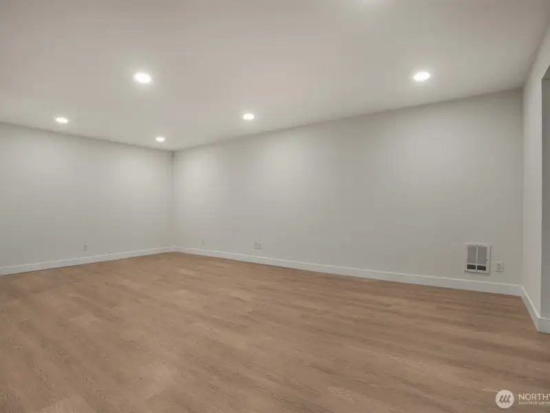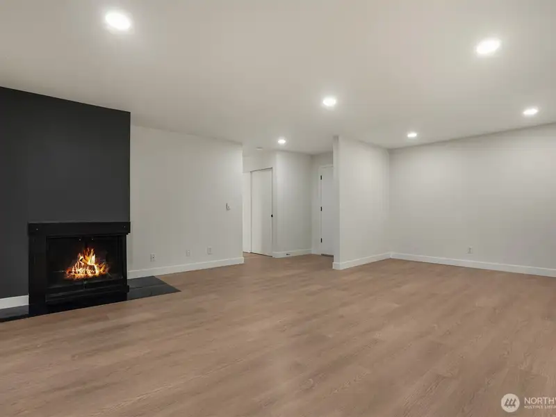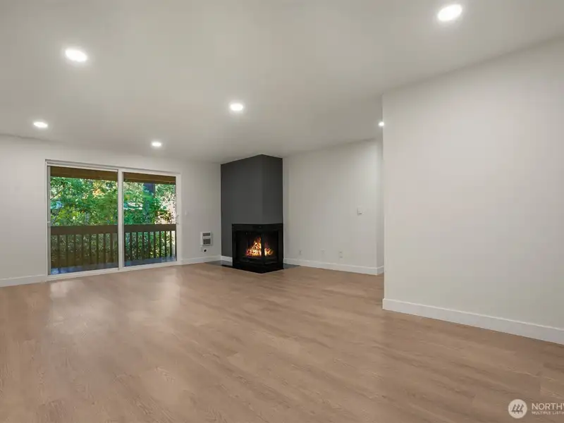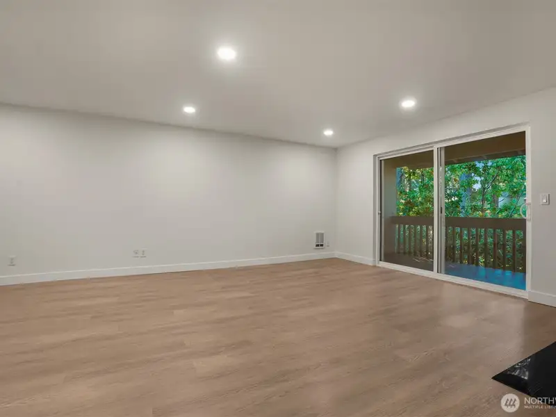 - Open floor plan between dining and living