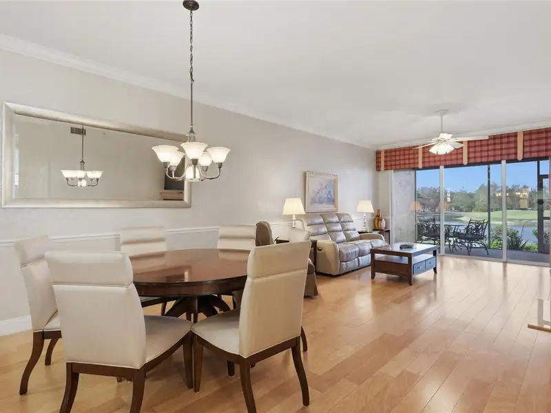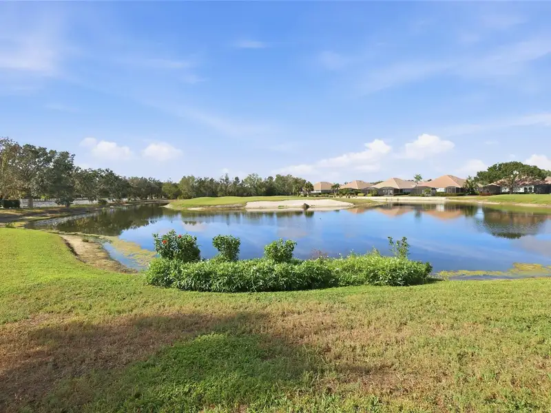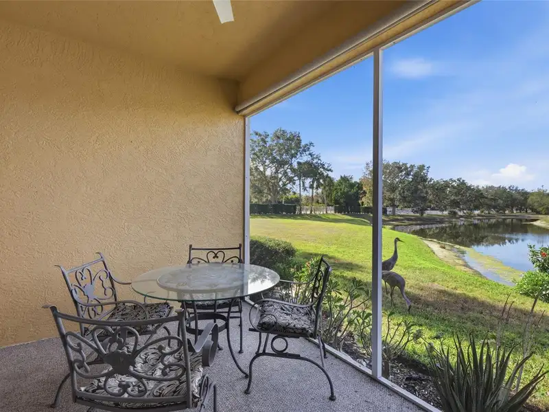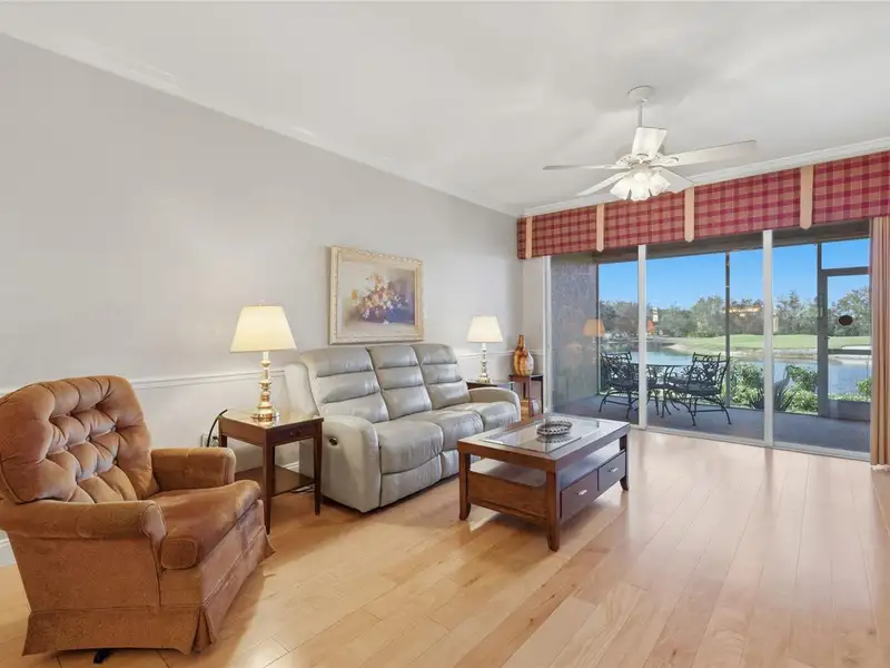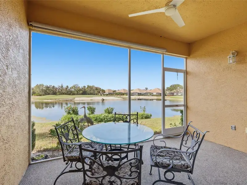 RARELY AVAILABLE 1ST-FLOOR END UNIT — WITH STUNNING GOLF COURSE & WATER VIEWS! Nestled in Boca Grove, behind the gates of the prestigious Lakewood Ranch Golf & Country Club, this 2-bedroom, 2-bath + DEN condo offers tranquil living at its finest. Perfectly positioned on the 17th hole of the Arnold Palmer–designed Legacy Golf Course, this residence captures coveted, scenic vistas that define the Florida lifestyle. Step inside to an inviting open-concept floor plan highlighted by tall ceilings, natural light, and effortless flow. The spacious kitchen features a charming eat-in nook and a long, wraparound breakfast bar—ideal for easy mornings and casual dining. Just beyond, the dining and living areas showcase a wall of sliding glass doors that frame spectacular views and bring the beauty of the outdoors directly inside. Relax on the screened-in lanai and savor picturesque western sunsets, sightings of Florida’s unique native wildlife, and even the occasional cheer from a well-earned hole-in-one! The private primary suite offers the same serene backdrop, complete with a tray ceiling, two walk-in closets, and a generous en-suite bath. Visitors will appreciate the well-planned split bedroom layout; with a comfortable guest room and full bath located at the front of the home. The den with pocket doors provides wonderful flexibility—perfect for a home office, hobby room, or additional guest space. Easy-to-maintain tile and laminate flooring run throughout, enhanced by thoughtful details such as crown molding and chair-rail accents. This maintenance-free condo also includes a 1-car garage, ideal for extra storage. Boca Grove residents enjoy a relaxed, welcoming lifestyle. The HOA fees cover water, sewer, trash, pest control, cable, and internet, plus access to the inviting community clubhouse, pool, and spa, where neighbors gather for social events organized by the Boca Grove Social Committee. BRAND NEW ROOFS are currently being installed—offering excellent VALUE and added peace of mind. Note: A golf membership is NOT required or conveyed, but there are Social, Athletic and Golf memberships available should you wish to join! A true hidden gem of just 120 residences, Boca Grove is located minutes from every convenience imaginable. Enjoy quick access to LWR Main Street, San Marco Plaza, Waterside Place, the new Center Point development, and an abundance of upscale shopping, dining, and year-round entertainment. With close proximity to I-75, UTC, top-rated healthcare, A-rated schools, and award-winning Gulf Coast beaches, this location simply can’t be beaten! Don’t let this rarely available first-floor, end-unit with DEN escape you—opportunities like this are truly hard to find at this price!