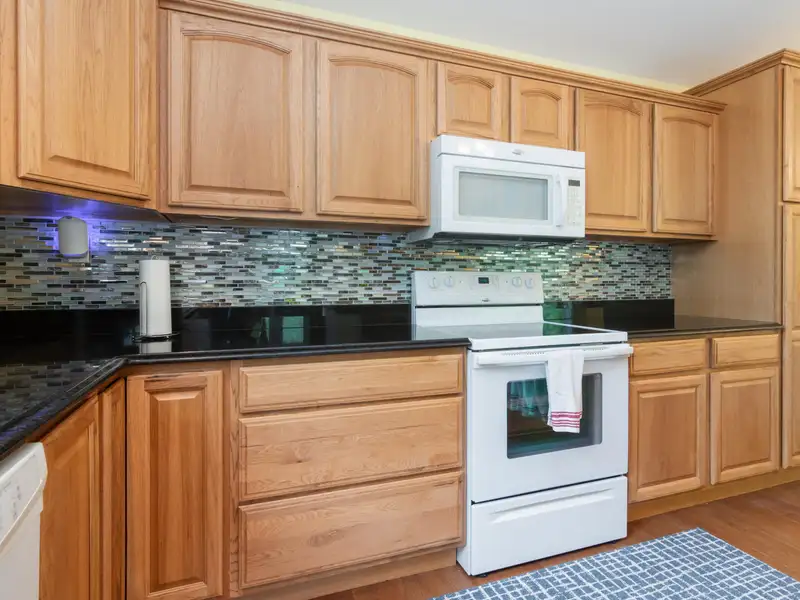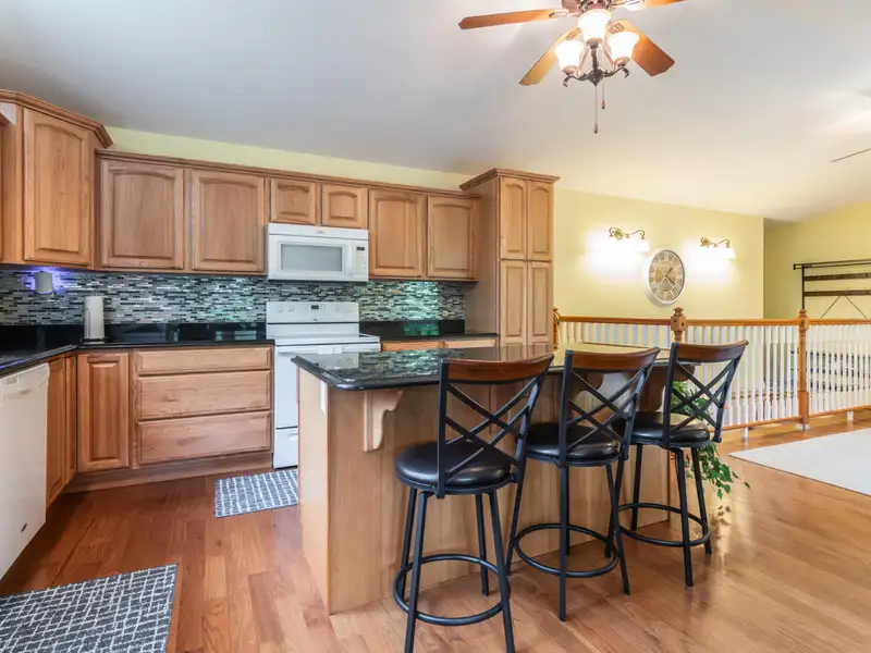 - Granite counters and hardwood kitchen floor
