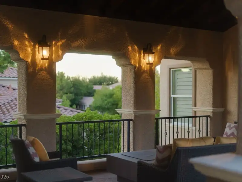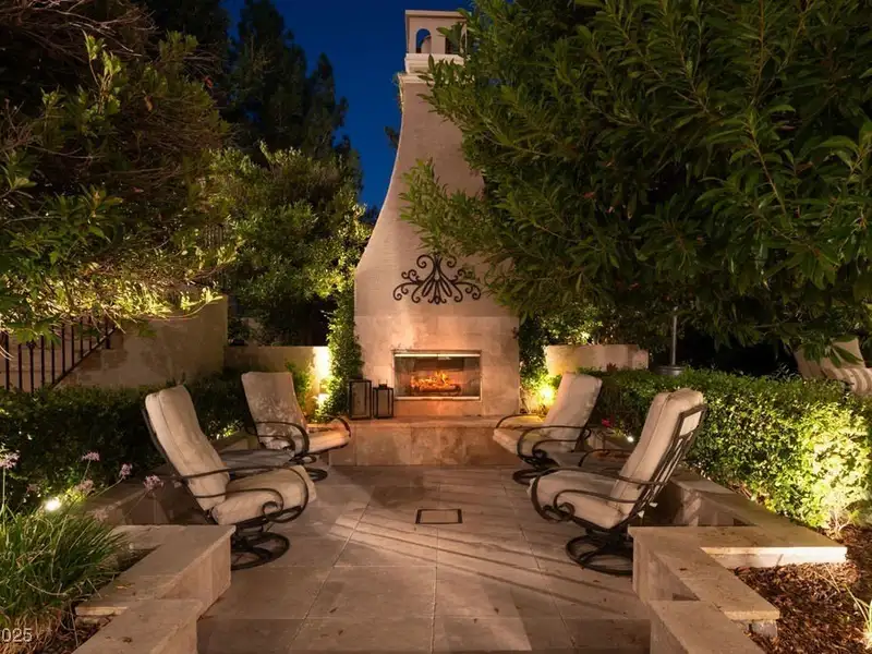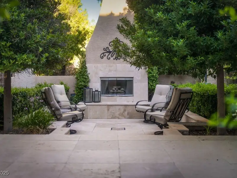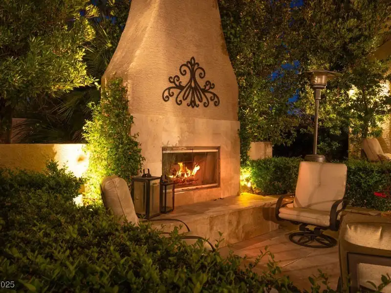- Covered outdoor lounge with fireplace