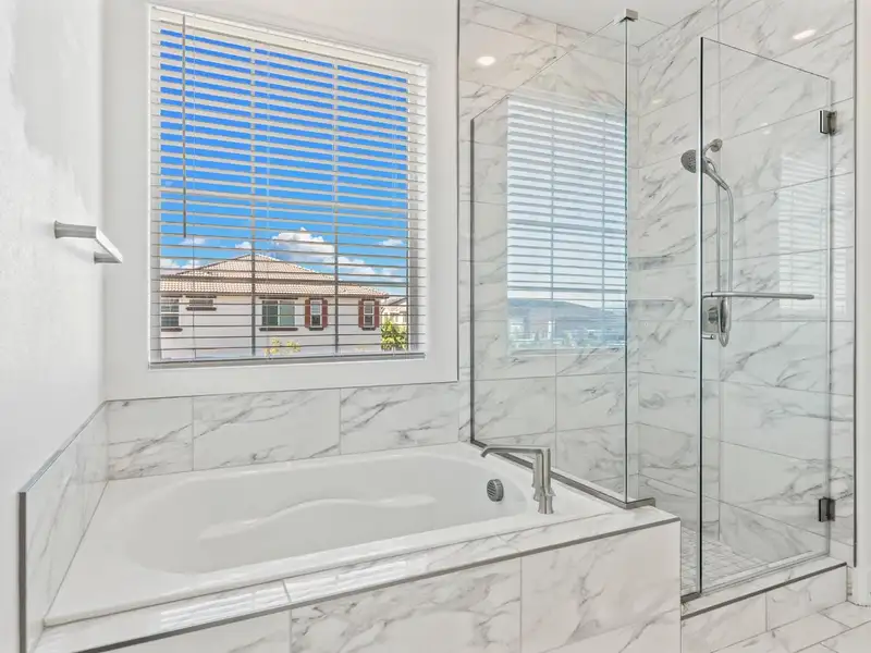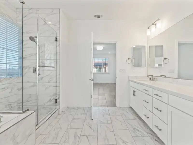 - Elegant master suite with tiled shower