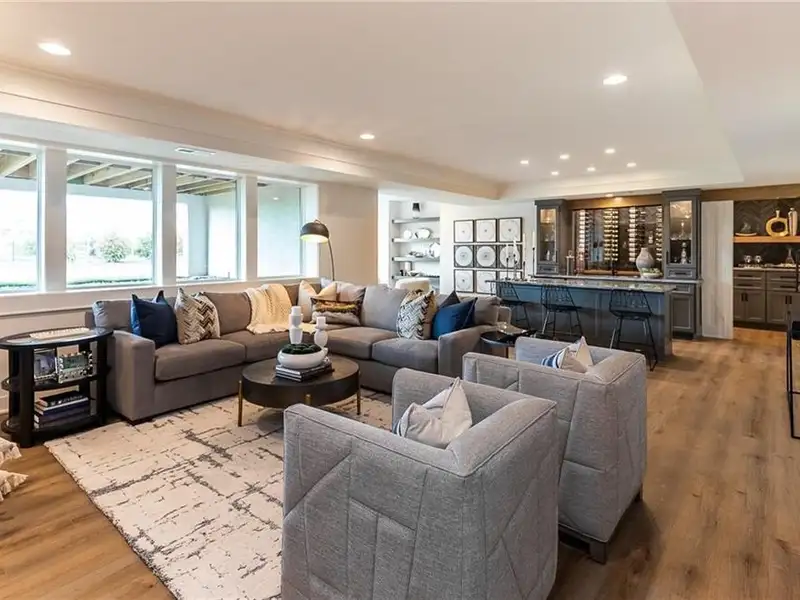 - Finished lower level with wet bar