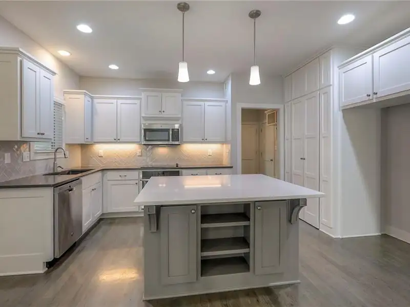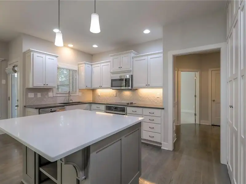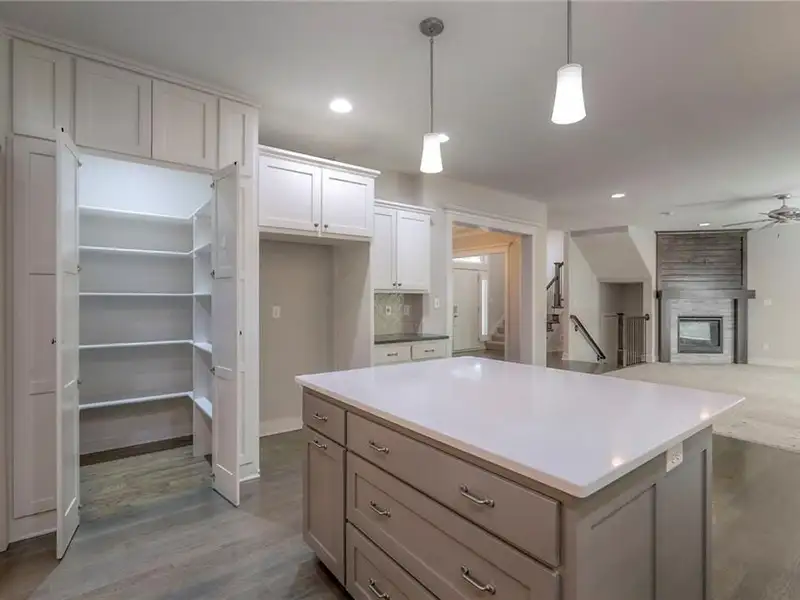 - Extended kitchen island with large pantry