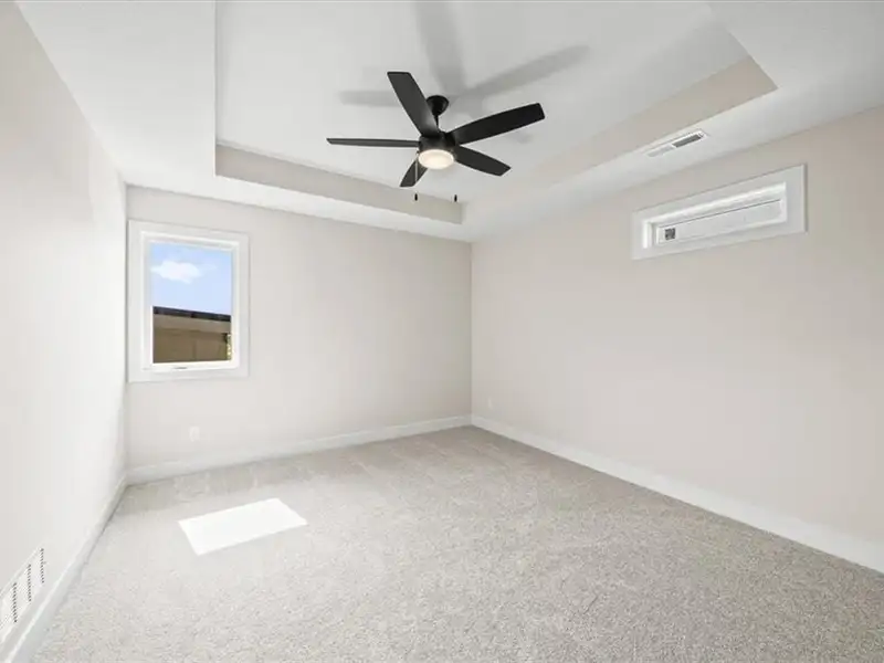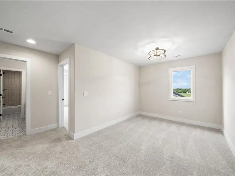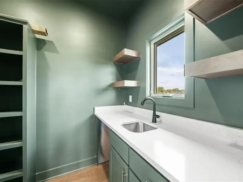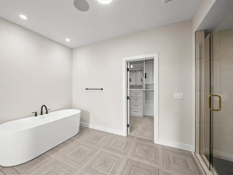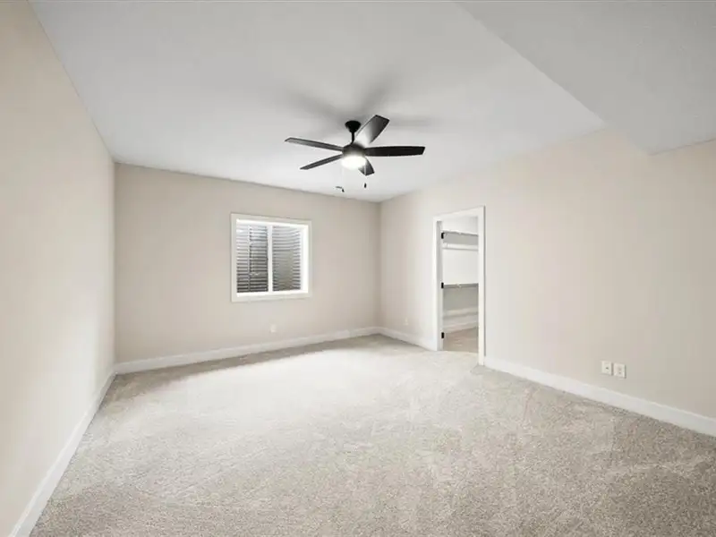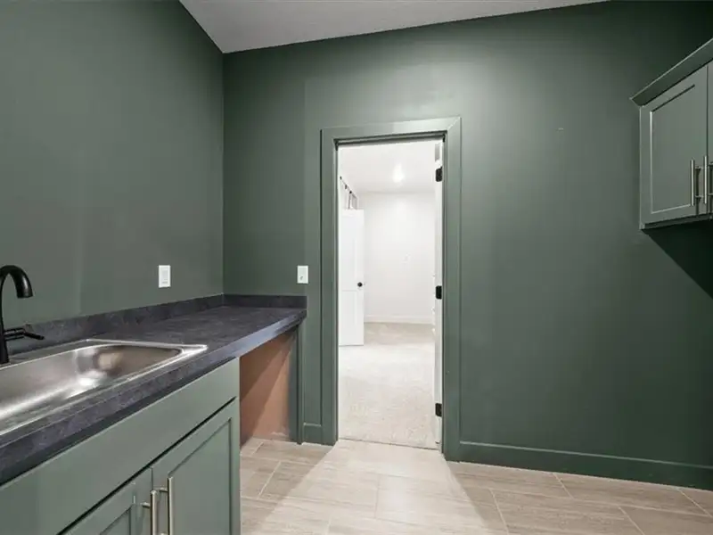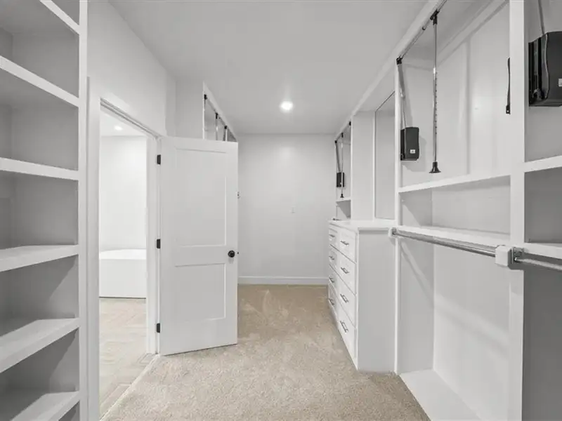 - Large walk-in closet connects to laundry