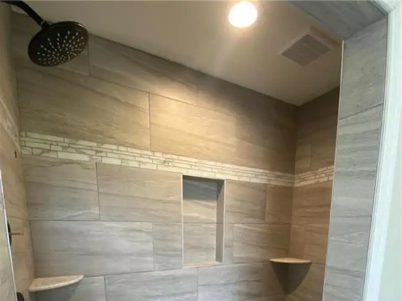 - Custom tiled primary bathroom