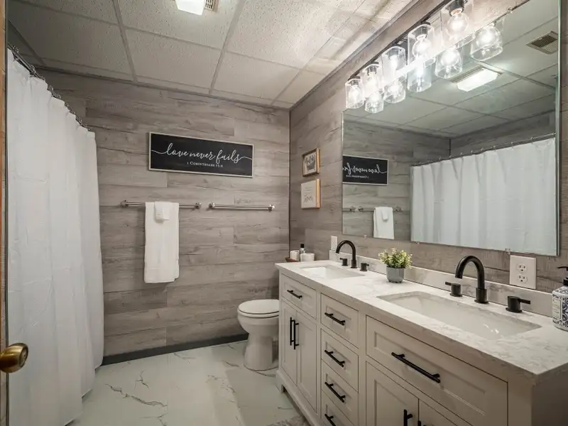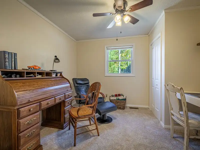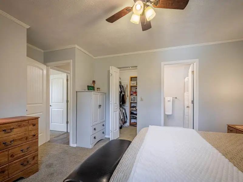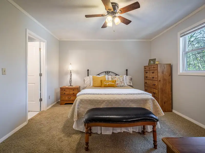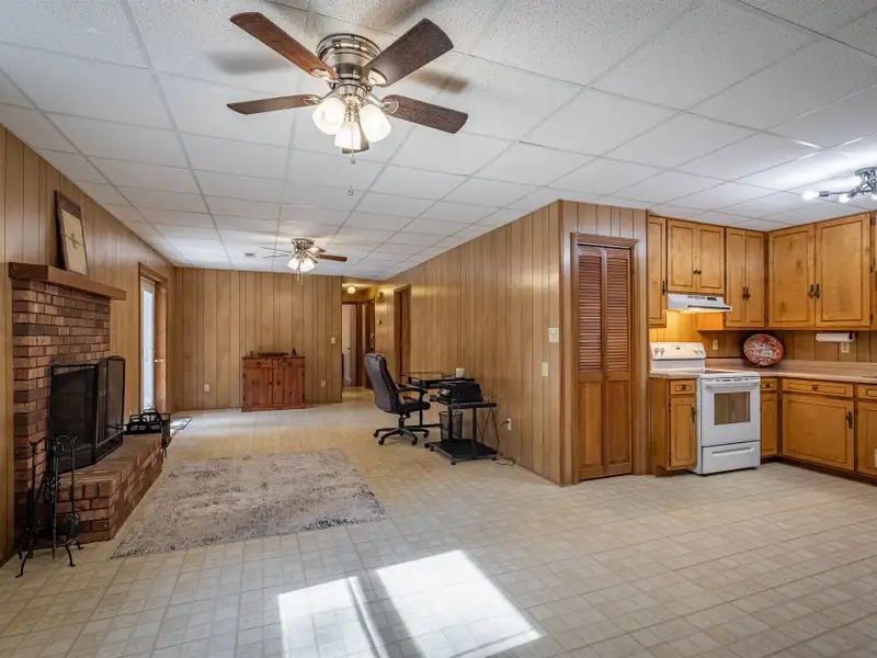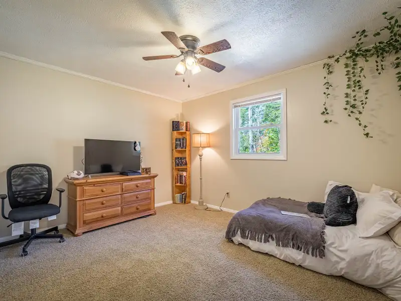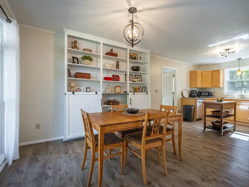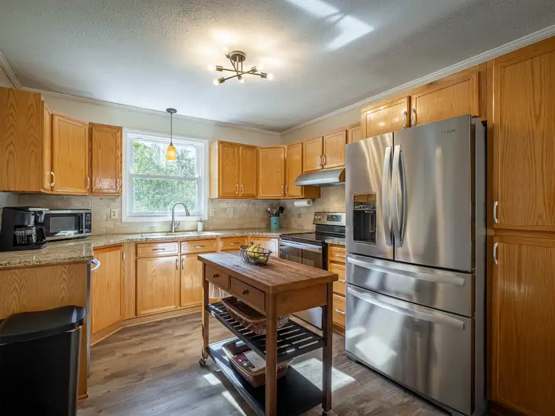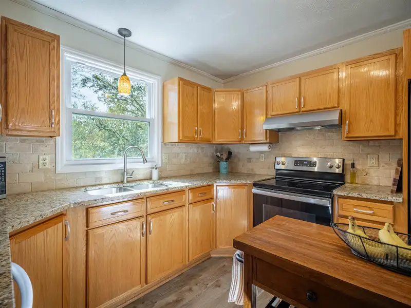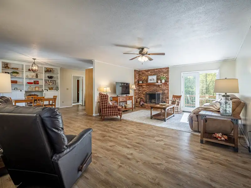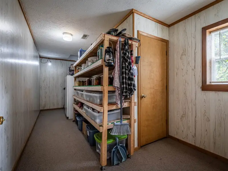 Welcome to this beautifully maintained home offering 2830 square feet of living space, including a fully finished basement that provides a complete second living quarters ? perfect for guests, extended family, or multi-generational living. At the end of the street, with 1.25 acres+, this home offers plenty of space and privacy for enjoying the outdoors in addition to the beautiful home. Step inside to the main floor that features an inviting living room with a wood-burning fireplace and French door access to a deck overlooking the peaceful backyard. The heart of the home is the updated kitchen, featuring granite countertops, travertine backsplash, stainless steel appliances, and a large laundry room with a walk-in pantry for all your storage needs. The primary suite offers a private retreat with an updated full bath and a walk-in closet, while all interior doors on the upper level have been replaced within the past five years. This incredibly well-maintained home has new vinyl replacement windows throughout and a new roof installed in 2023, and luxury vinyl plank flooring that flows seamlessly into the adjoining dining and living areas, creating a warm and modern atmosphere and ensuring years of worry-free comfort.Downstairs, the finished basement provides exceptional flexibility with a full kitchen, family room with a second wood-burning fireplace, bedroom a full bath, and a multi-purpose flex room perfect for an office, gym, or hobby space. The workshop/garage area is equipped with 220-amp service and its own garage door, making it ideal for projects or additional storage. From the basement family room, step outside to the covered patio ? a dry, shaded area perfect for outdoor entertaining or quiet relaxation.The backyard is a true highlight, featuring a firepit area, raised garden beds, fruit trees, a versatile shed with a newer roof and floor, and a creek along the rear of the property that adds a touch of natural charm. A gravel driveway leads to the basement garage/workshop for convenient access.Additional updates include a main floor heat pump replaced in 2018, annual fireplace maintenance, and a septic system pumped in 2025. The garage, converted from a carport, includes one door opener and a bonus room with a largen storage closet ? easily removable at the buyer's preference. All cut firewood and basement storage shelving will remain with the property.With thoughtful updates, flexible living spaces, and a scenic setting, this home combines comfort, functionality, and charm ? move-in ready and waiting to welcome its next owners.