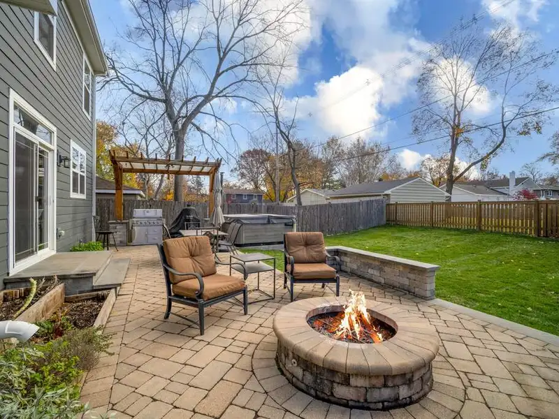 - Custom patio with built-in grill and firepit
