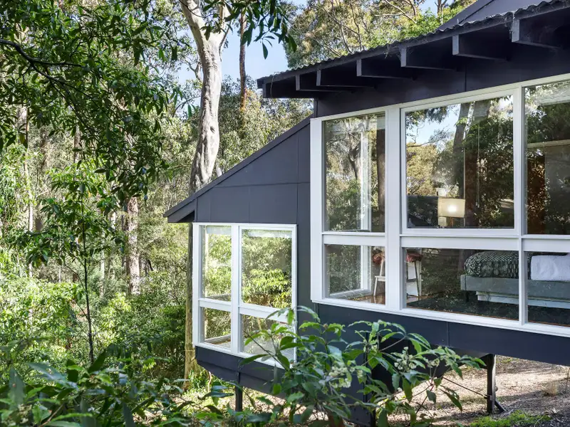 - Elevated, treehouse-style living with expansive windows and treetop views