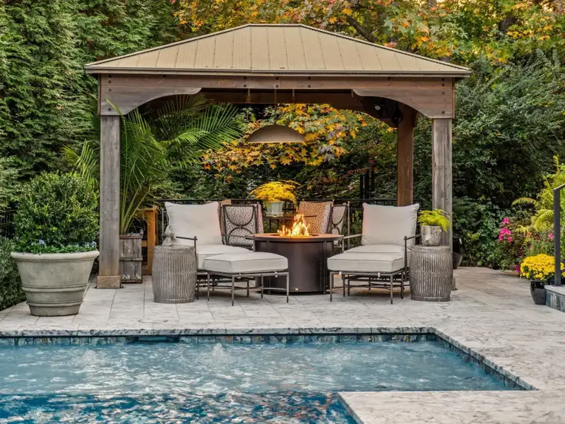 - Heated gunite pool with cabana