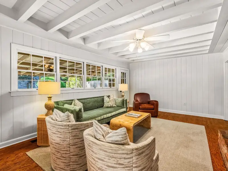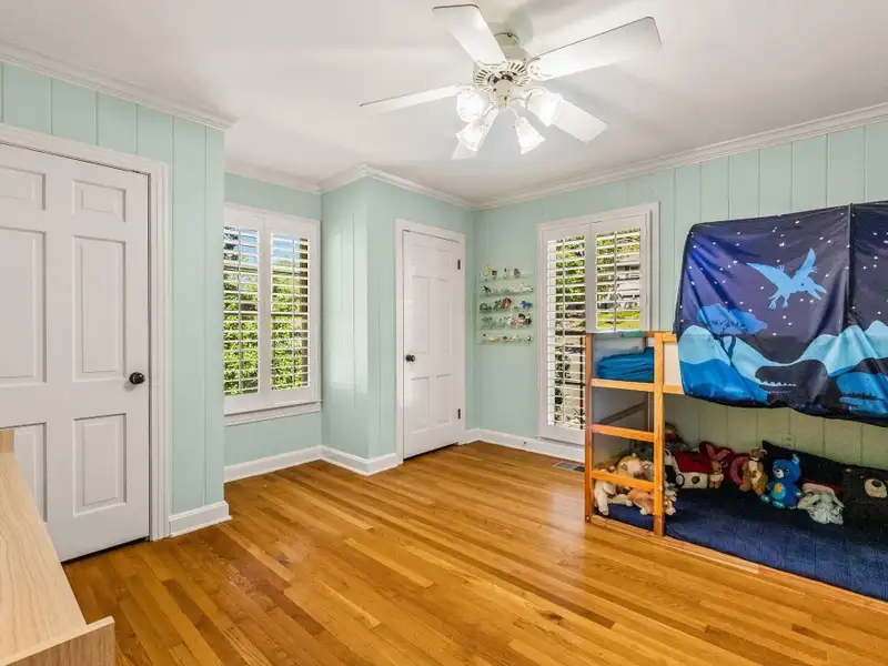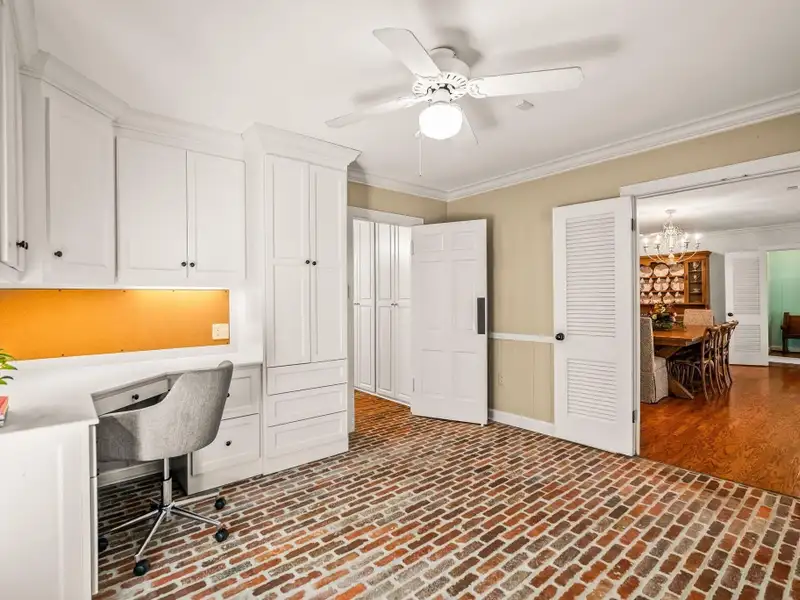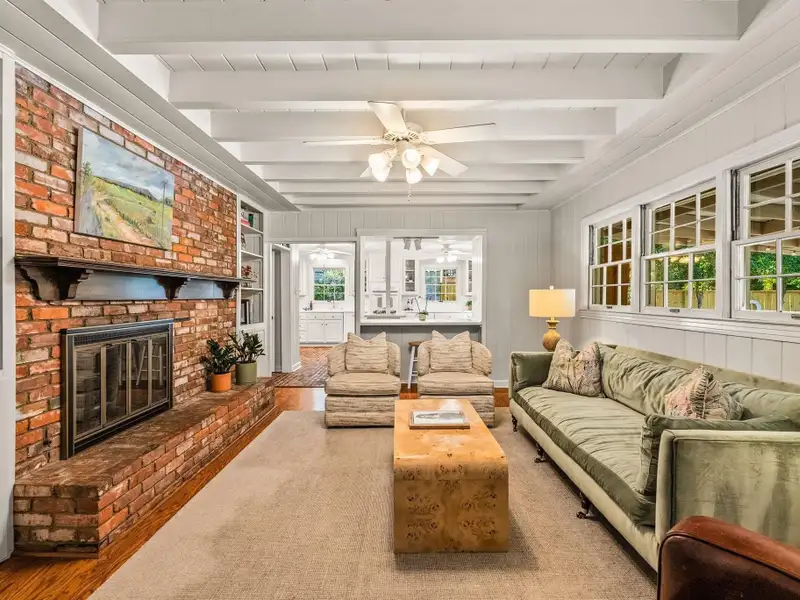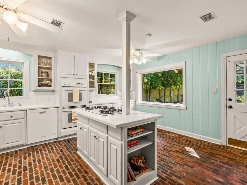 - Plantation shutters and exposed brick floors