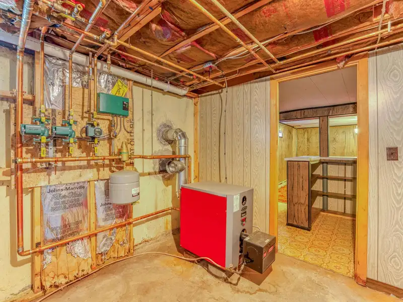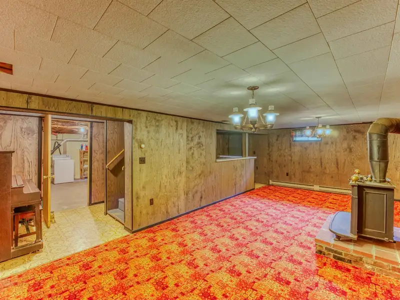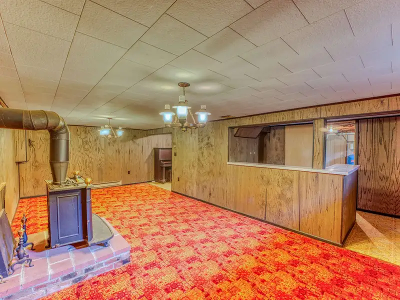 - Spacious rec room with wood stove and bar