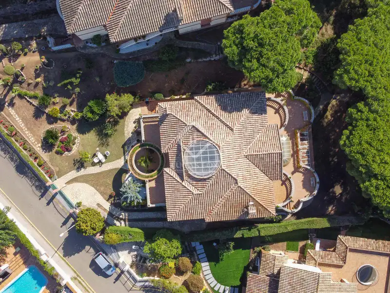 The property covers a built area of 1,100 m² and is located on a plot of 2,300 m². It offers an extensive garden both in the front and in the back. In the morning, the sun illuminates the front, while in the afternoon, it illuminates the area facing the sea.