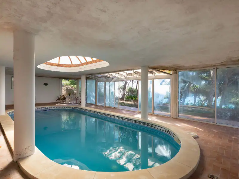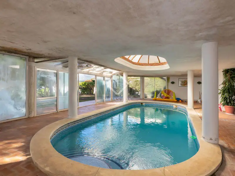 The lower part of the house is composed of a large covered pool, garage, technical installations, pantry and laundry room. We can access the lower ground floor both from the inside (in the kitchen there is a direct staircase) and from the outside, specifically through the terrace on the ground floor or through the garden.