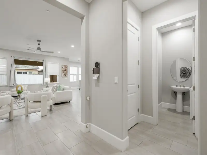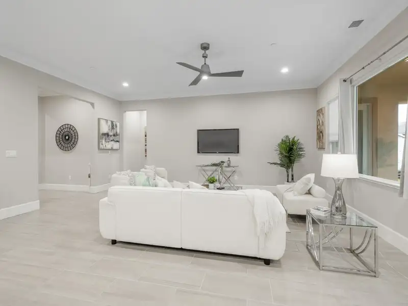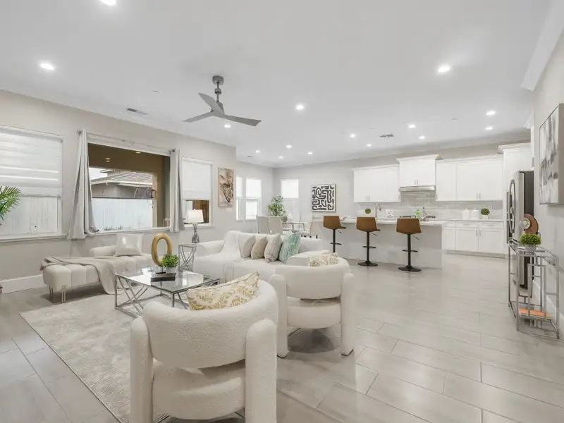- Open dining and living areas