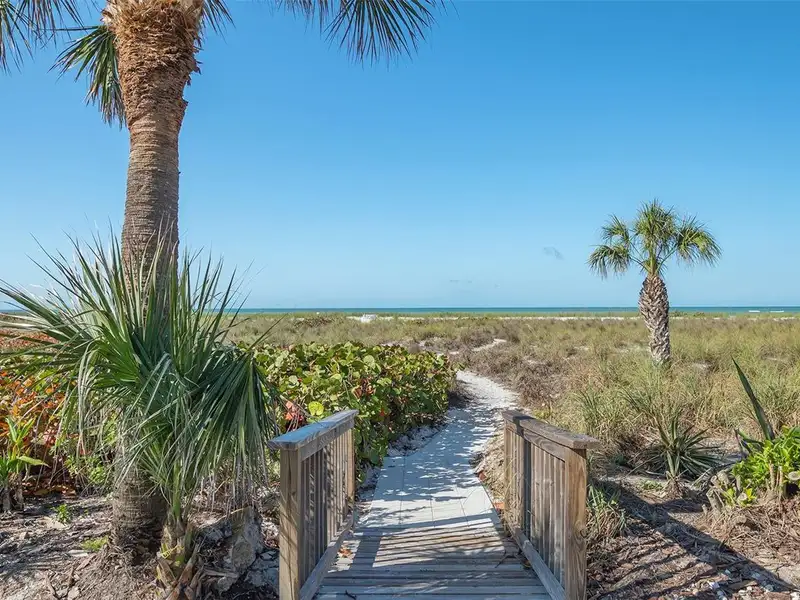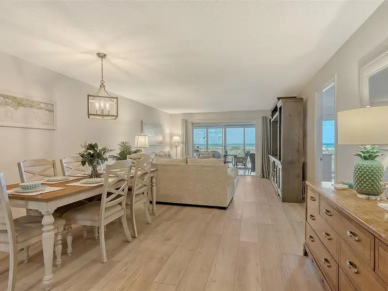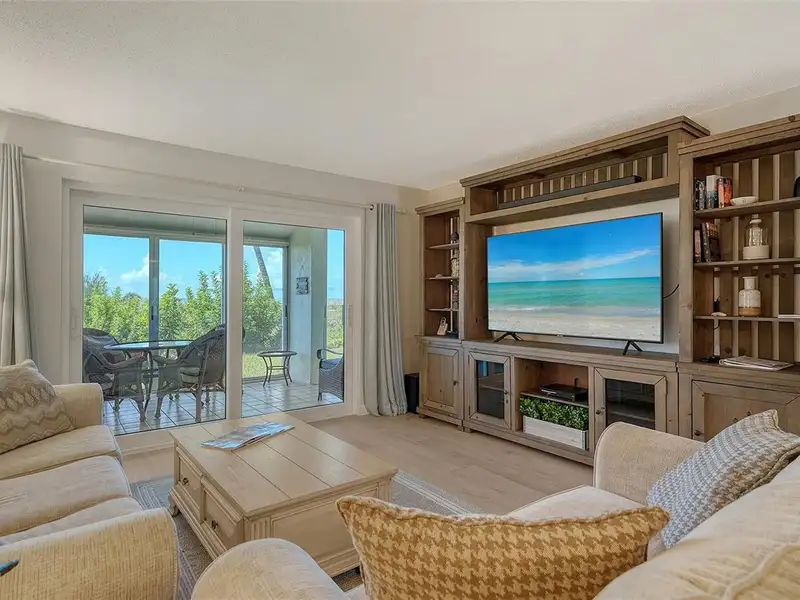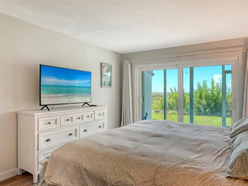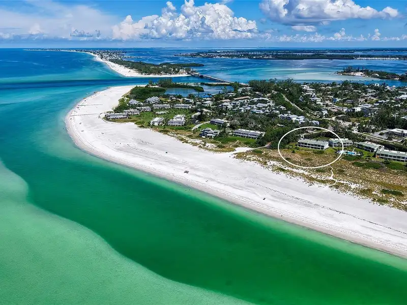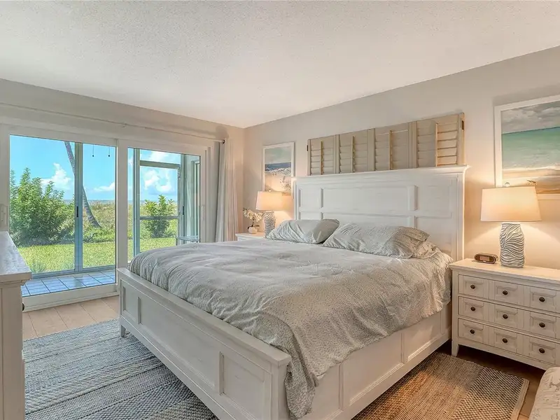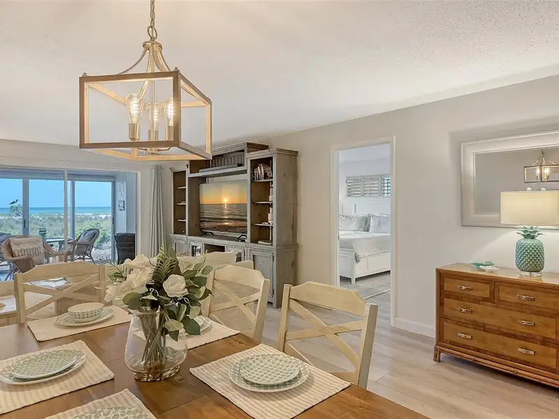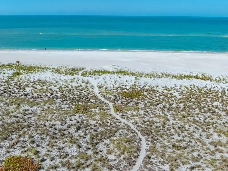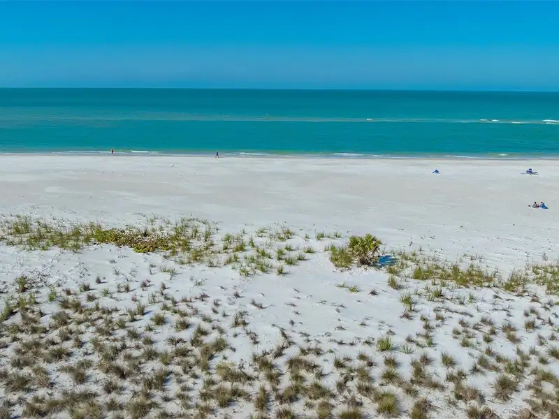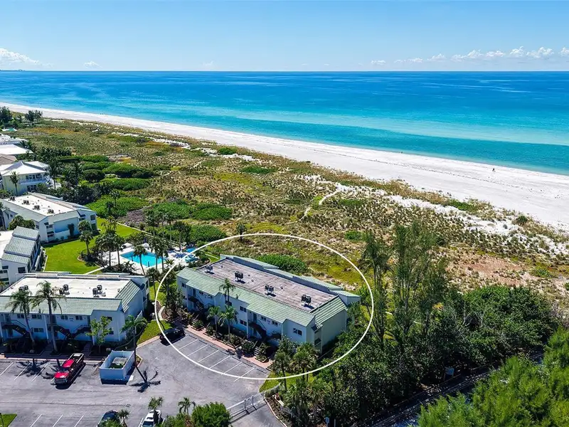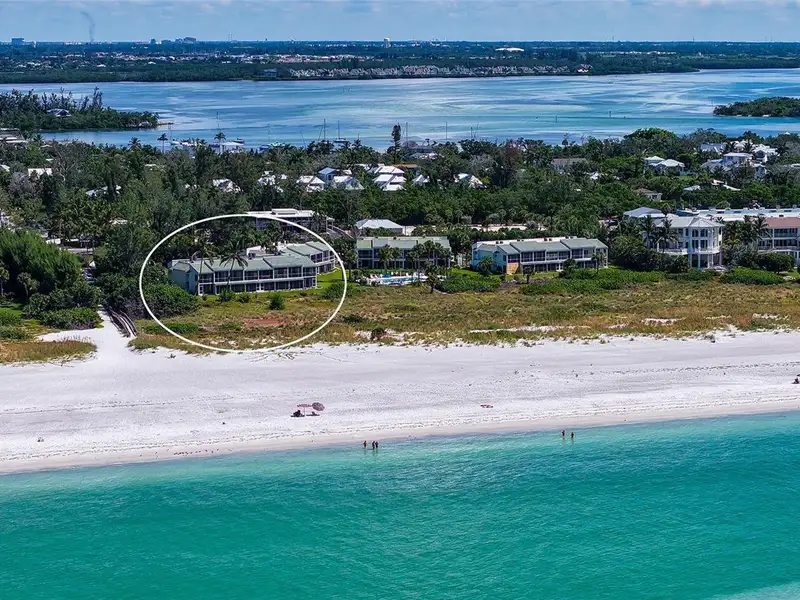 WOW! The minute you open the front door of this first floor Coastal Retreat Seaside condo, you will be captivated by the shimmering, turquoise Gulf of Mexico Water View and the Panoramic Sandy White Beach in front of you. You'll be eager to get a closer look from the glassed in Florida Room, so you may overlook the beauty of this updated, attractively furnished & decorated first floor residence at Sea Pines, a small 28 unit beach front condo complex on the north end of Longboat Key, Florida. Since purchasing five years ago, these owners have lovingly transformed this almost 1400 square foot, corner unit with extra windows, open concept, two bedroom with En Suite baths & walk in closets to today's coastal contemporary style tastes. Improvements include light oak color Luxury Vinyl wide plank flooring throughout, Samsung stainless steel appliances including washer & dryer, new HVAC installed, updated the primary bedroom with a quartz counter vanity, tiled & glass door shower, and fitted out closet. The condo's interior was painted as well & new, high quality neutral colored living room, dining & bedroom furniture, rugs, lighting & drapery, artwork and a large entertainment center installed. A new tiled roof was installed on this building in 2024. Additional features include impact resistant windows in both bedrooms & the office adjacent to the kitchen. Plantation shutters cover all these windows. This office area is fitted out with oak cabinetry, desk & drawers, perfect for working at home. The spacious 26-foot-long lanai (Florida Room) can be entered from either the primary bedroom or the living room via sliders. This may be your favorite room with mesmerizing Gulf & beach views over the sea grass pathways to the water. And of course, the magnificent Longboat Key Gulf of Mexico sunsets will thrill you whether watching from your lanai or enjoying on the beach while toasting your good fortune! This turnkey handsomely appointed & attractively furnished seaside retreat offers great rental income if you so wish. There is the potential of keeping on an existing three month (Jan., Feb. & March 2026) tenant. Currently these owners are using RVA Rentals, but a new owner can choose how or if to lease out this unit. Rental friendly Sea Pines can be leased out six times a year with a one month minimum time period. Two additional benefits to this first floor Unit 14 are that these owners have paid $5357 assessment for new landscaping for the complex plus new interior glass sliders will be installed in the living room & primary bedroom and sellers have paid for that as well. Sea Pines has an electronic gated entry for security & privacy. Amenities include a large, heated pool, is large pet friendly & offers excellent rental income possibilities. Charming Longboat Village is nearby with fabulous restaurants like The Shore, Mar Vista, Whitney's, Ventura's & the thriving Whitney Shopping Center. Anna Maria Island is just across the Longboat north end bridge for additional night life entertainment.