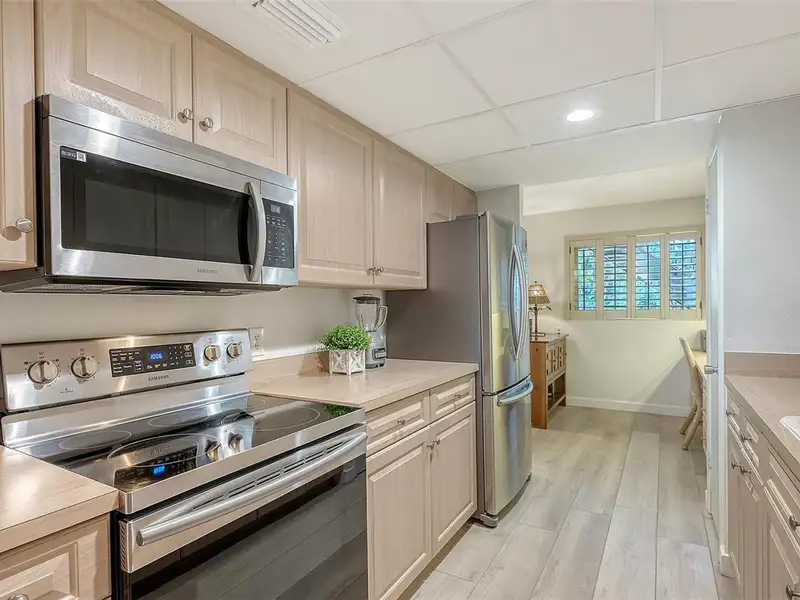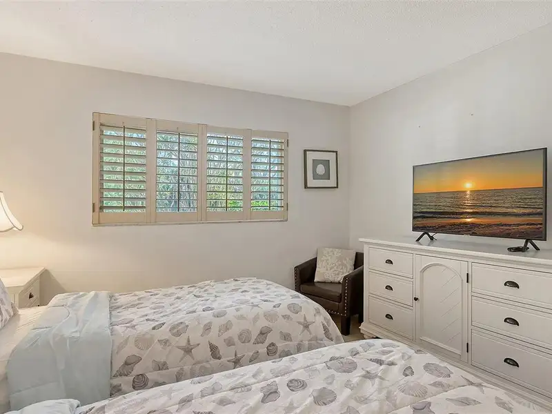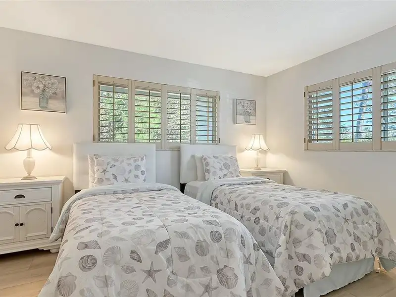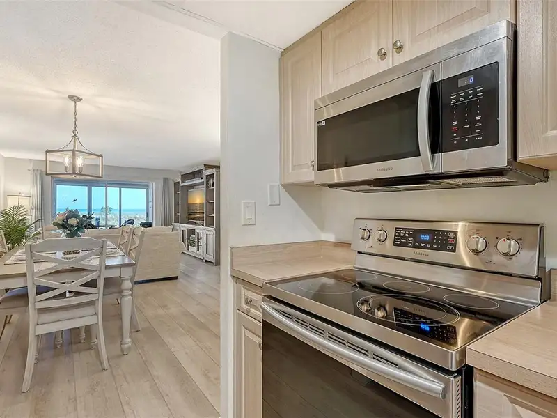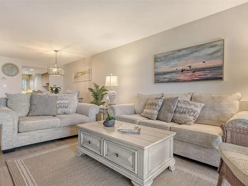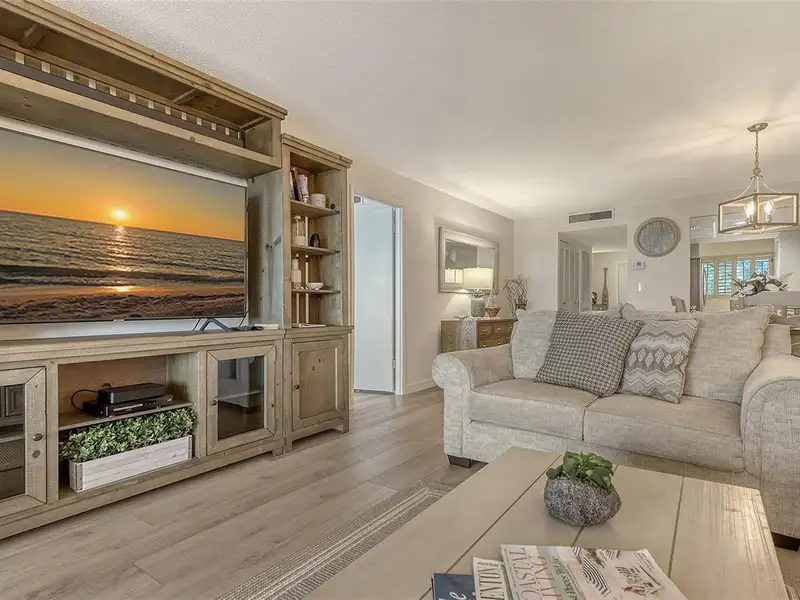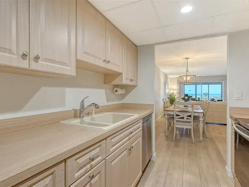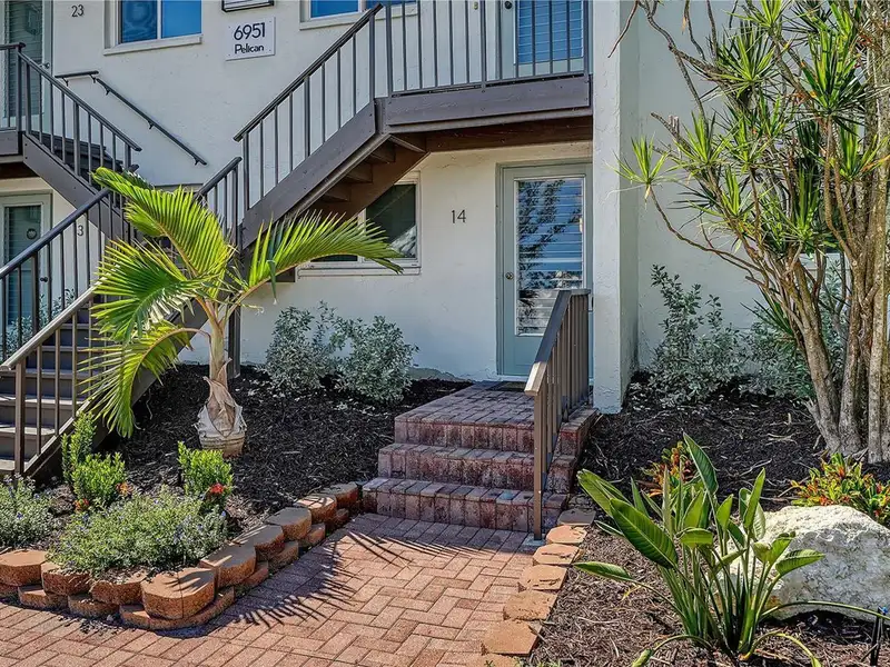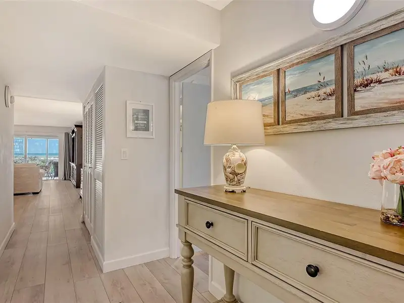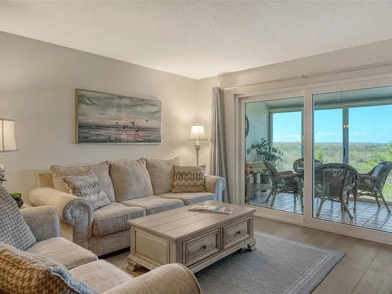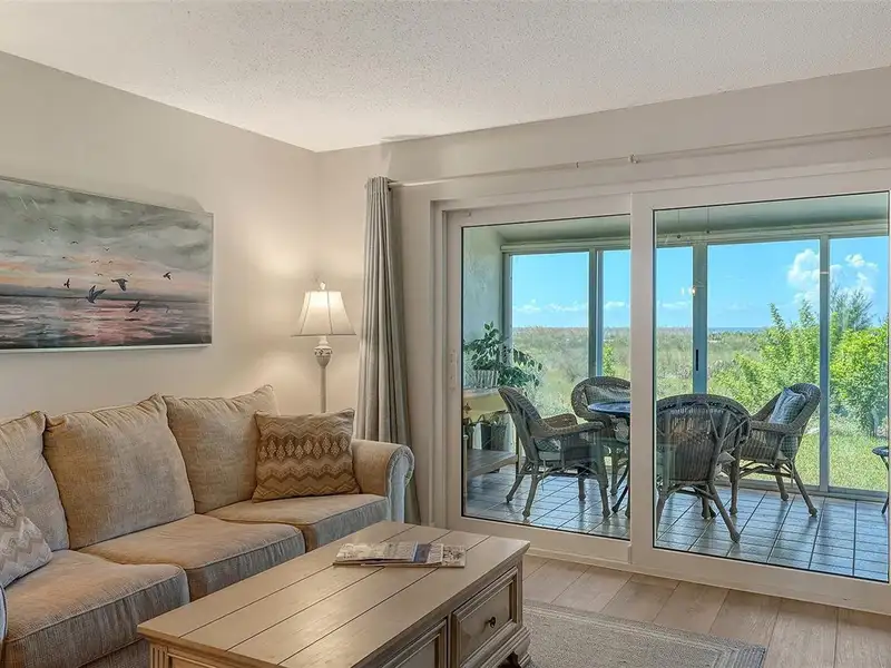 WOW! The minute you open the front door of this first floor Coastal Retreat Seaside condo, you will be captivated by the shimmering, turquoise Gulf of Mexico Water View and the Panoramic Sandy White Beach in front of you. You'll be eager to get a closer look from the glassed in Florida Room, so you may overlook the beauty of this updated, attractively furnished & decorated first floor residence at Sea Pines, a small 28 unit beach front condo complex on the north end of Longboat Key, Florida. Since purchasing five years ago, these owners have lovingly transformed this almost 1400 square foot, corner unit with extra windows, open concept, two bedroom with En Suite baths & walk in closets to today's coastal contemporary style tastes. Improvements include light oak color Luxury Vinyl wide plank flooring throughout, Samsung stainless steel appliances including washer & dryer, new HVAC installed, updated the primary bedroom with a quartz counter vanity, tiled & glass door shower, and fitted out closet. The condo's interior was painted as well & new, high quality neutral colored living room, dining & bedroom furniture, rugs, lighting & drapery, artwork and a large entertainment center installed. A new tiled roof was installed on this building in 2024. Additional features include impact resistant windows in both bedrooms & the office adjacent to the kitchen. Plantation shutters cover all these windows. This office area is fitted out with oak cabinetry, desk & drawers, perfect for working at home. The spacious 26-foot-long lanai (Florida Room) can be entered from either the primary bedroom or the living room via sliders. This may be your favorite room with mesmerizing Gulf & beach views over the sea grass pathways to the water. And of course, the magnificent Longboat Key Gulf of Mexico sunsets will thrill you whether watching from your lanai or enjoying on the beach while toasting your good fortune! This turnkey handsomely appointed & attractively furnished seaside retreat offers great rental income if you so wish. There is the potential of keeping on an existing three month (Jan., Feb. & March 2026) tenant. Currently these owners are using RVA Rentals, but a new owner can choose how or if to lease out this unit. Rental friendly Sea Pines can be leased out six times a year with a one month minimum time period. Two additional benefits to this first floor Unit 14 are that these owners have paid $5357 assessment for new landscaping for the complex plus new interior glass sliders will be installed in the living room & primary bedroom and sellers have paid for that as well. Sea Pines has an electronic gated entry for security & privacy. Amenities include a large, heated pool, is large pet friendly & offers excellent rental income possibilities. Charming Longboat Village is nearby with fabulous restaurants like The Shore, Mar Vista, Whitney's, Ventura's & the thriving Whitney Shopping Center. Anna Maria Island is just across the Longboat north end bridge for additional night life entertainment.