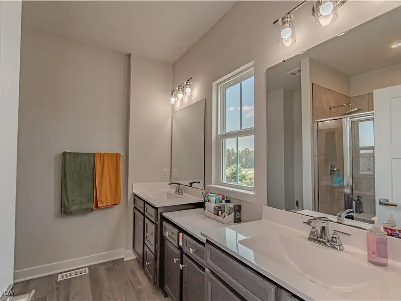 - Master suite with tiled walk-in shower