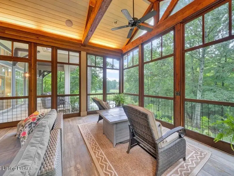 Welcome to 2000 Forest Pointe Lane- Where luxury, tranquility, and privacy come together on nearly 5 acres in a premier location. This remarkable home features everything you could want, blending timeless craftsmanship with top-of-the-line finishes that impress at every turn. Starting with the flagstone path that leads to the wood double doors, setting the stage for the elegance inside. The main level features stunning Carlisle Cherry and hickory flooring in varying plank widths up to 12inches. The chef's kitchen boasts thermador appliances, gas range, a beverage bar with additional dishwasher and ice maker. A butler's pantry with Sub-Zero wine storage, a second refrigerator, desk space and additional cabinetry. Entertaining is effortless in the vaulted and beamed living room with fireplace and large windows. The informal living room off of the eat in kitchen is the perfect place to take in the views of the cascading waterfall, pond and land. The custom very large screened porch can be enjoyed year round with interchangeable vinyl panels. The primary suite with spa-like bath features a soaking tub, custom tile shower, double vanities and custom walk-in closet. Upstairs offers 2 oversized bedrooms each with a private bath. The one of a kind loft room with observation deck and bunk area are the perfect retreat. The lower level walkout is ideal for an in-law suite or guests with its own private entrance, kitchen added in 2020, dining area, fireplace and builtins, 2 bedrooms, workout space, a safe room, additional storage, and golf cart access. Other top of the line features include Geothermal system, Generator that supplies power to the entire home, reverse osmosis drinking water faucet, and safe room with 911 calling with a touch of a button No detail has been overlooked in this one of a kind gem. Schedule your private showing today
