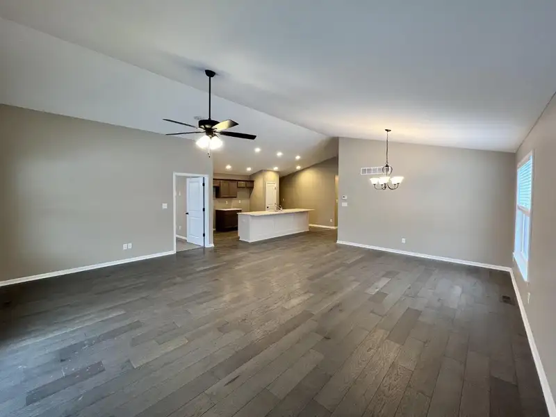 SLATED FOR COMPLETION DECEMBER 2025, this is our AZALEA model. Features include an open concept, spacious great room with vaulted ceiling and exterior access via sliding glass doors which allows for plenty of natural light and SERENE POND VIEWS, kitchen with soft close maple cabinetry, crown molding, ISLAND with seating, QUARTZ counters, pantry, and dining area. The main living area includes LVP flooring while EGGSHELL paint dresses the walls. The PRIMARY bedroom has a tray ceiling, ENSUITE bathroom with CUSTOM TILE SHOWER, and a large walk-in closet, ENTRY ROOM (from garage) features a place for LAUNDRY and storage, bathrooms include WHITE QUARTZ vanity tops. Additional features include a FULL BASEMENT (stubbed for future bath), attached garage with 5' EXTENSION and opener installed, concrete PATIO, full LANDSCAPING PACKAGE, front and rear COVERED PORCHES, included as well as builder WARRANTY. Many options for customization of our 18 floor plans are possible to include structural changes such as a 3 car garage, 5' garage extension, slab, or basement options, as well as for other finishes such as for a fireplace, custom tile shower, exterior masonry, etc. Photos are of a previously built home and will be updated upon completion.