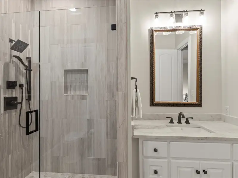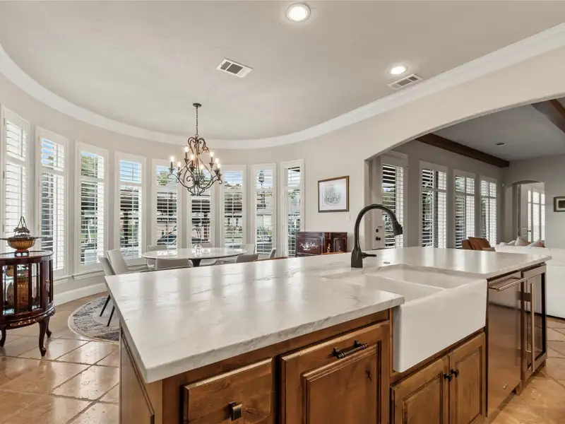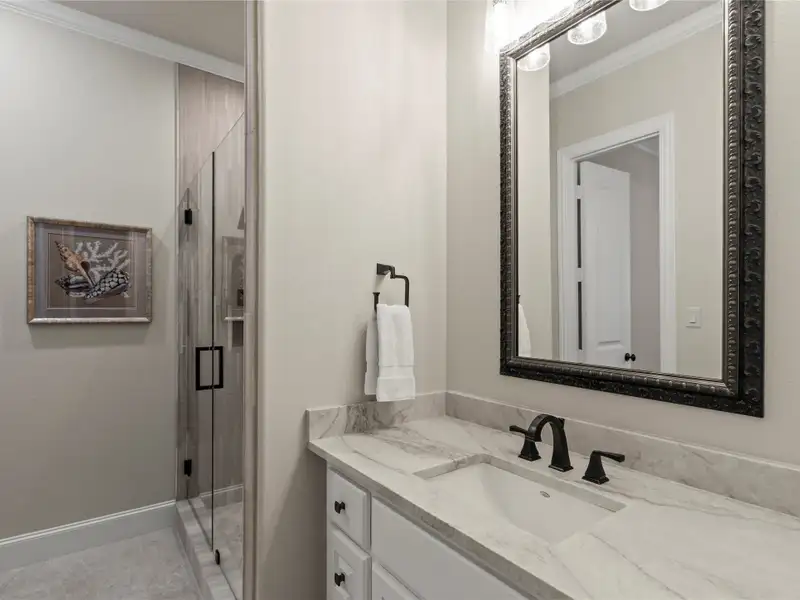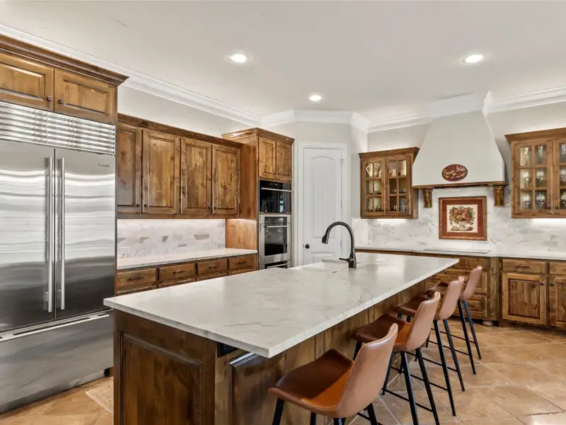 - Temperature-controlled oversized 3-car garage with epoxy flooring