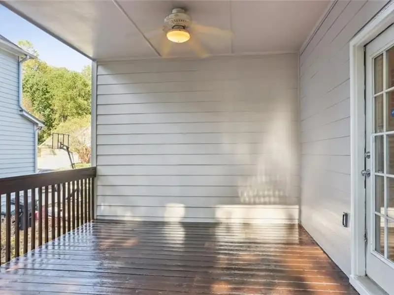 - Covered deck overlooking fenced backyard