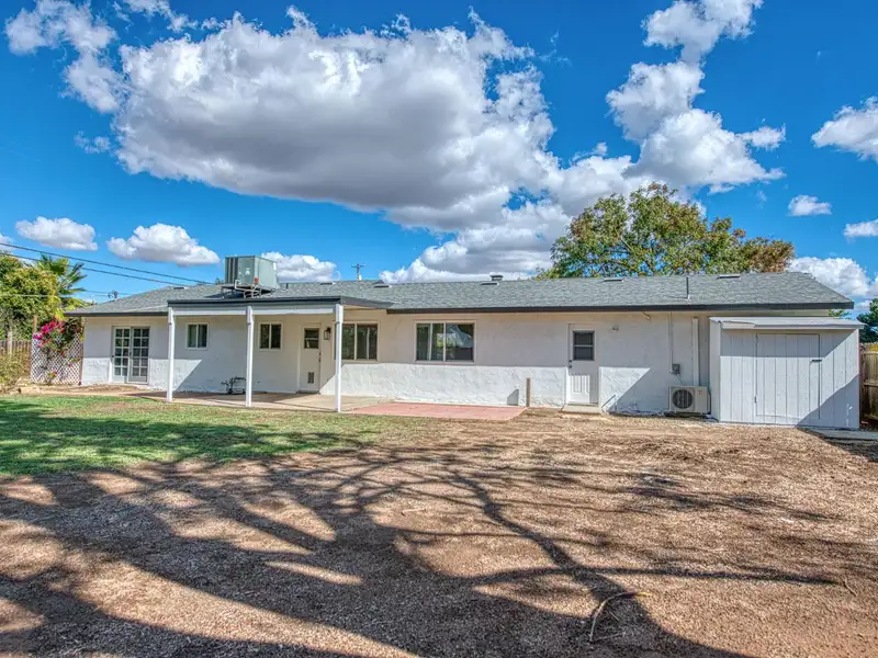 - Fenced backyard with storage shed