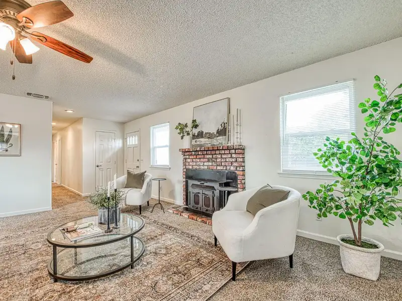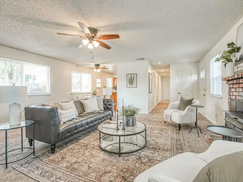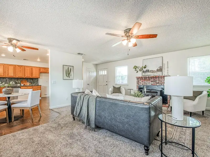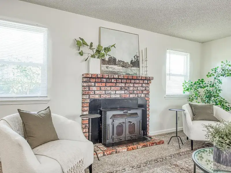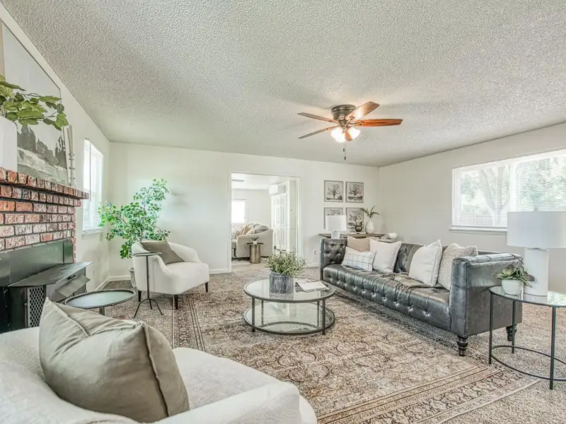 - Brick fireplace in spacious living room