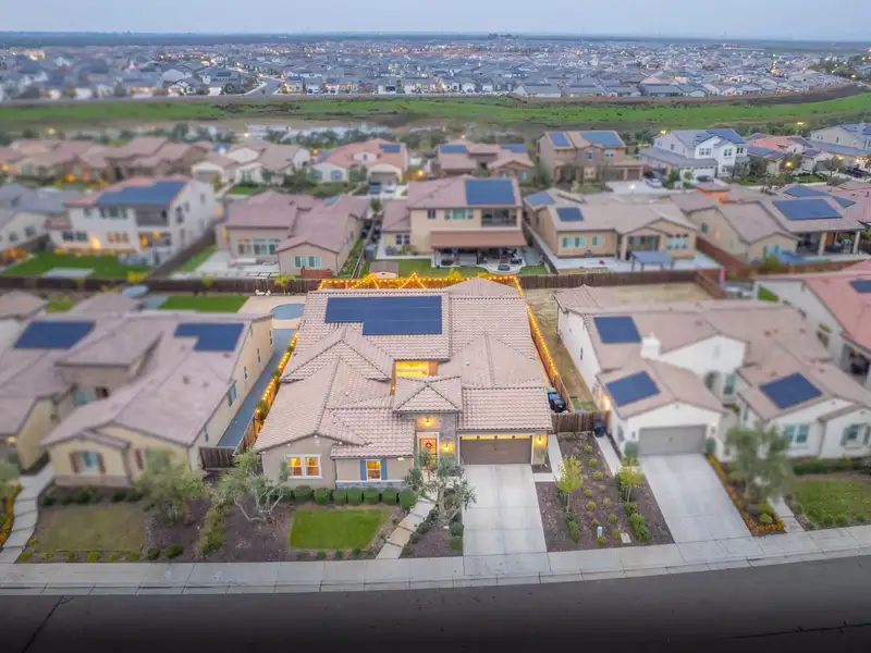 - Three-car garage and owned solar panels