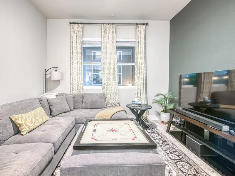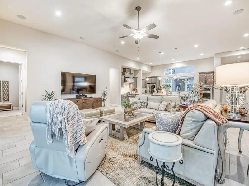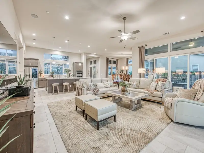 - Open-concept living with high ceilings