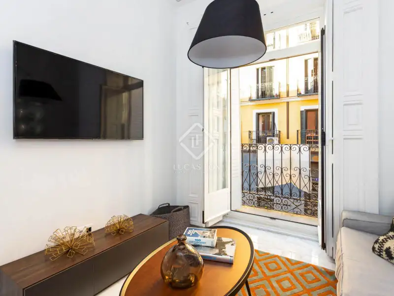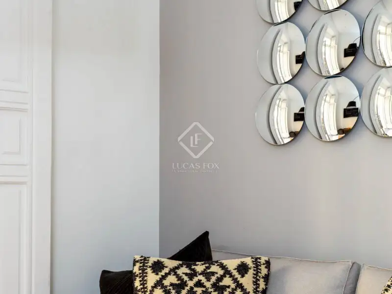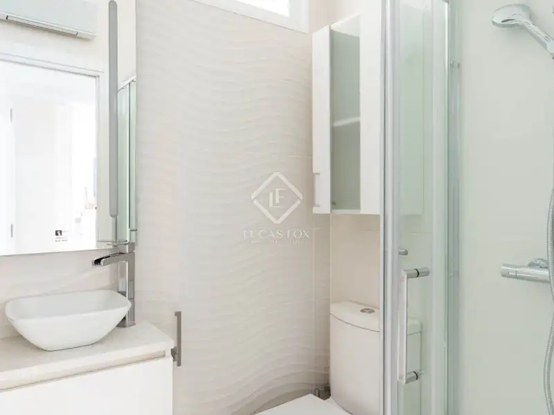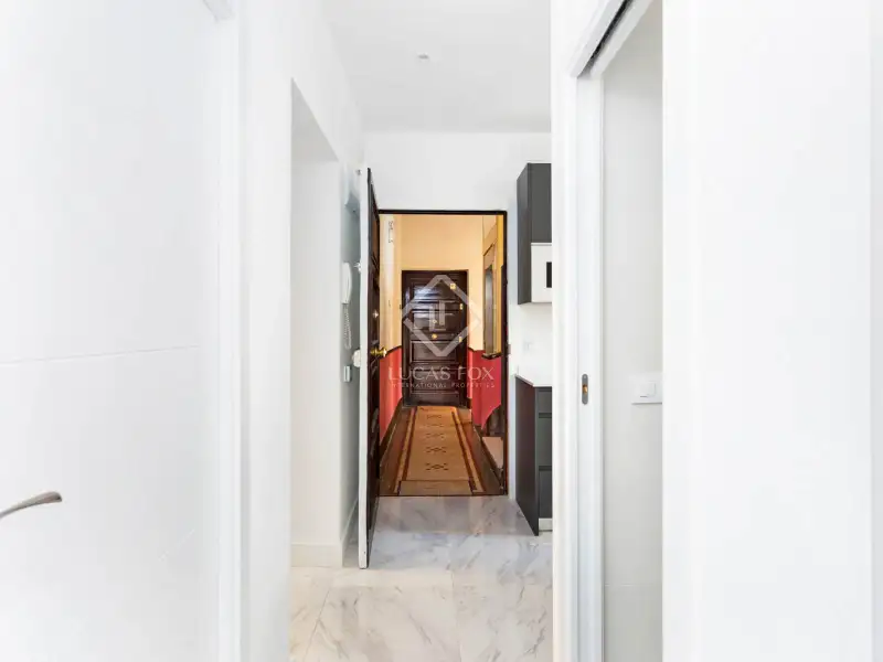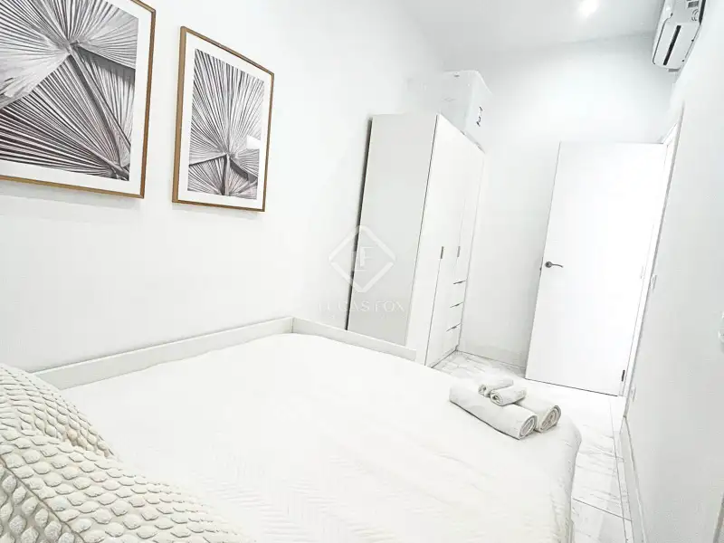 Lucas Fox presents this magnificent apartment, completely renovated and furnished with high quality materials in Madrid. The property is located on the first floor, but with the height of a second floor. It also offers privacy and tranquility, without giving up proximity to everything you need. This charming property consists of two large double bedrooms, one of them with a private bathroom. One of the bedrooms has a balcony overlooking the street Ilustración, while from the other you can enjoy a panoramic view of the new hotel in the area. The living room, with an elegant and modern design, has a second balcony overlooking the street. The separate kitchen is fully equipped with top-of-the-range appliances , including an oven, ceramic hob, refrigerator, and more, offering everything you need to enjoy a functional and quality kitchen. Thanks to its large windows in all rooms, this property enjoys exceptional natural light throughout the day. It also has an individual gas boiler and air conditioning in all rooms, for total comfort at all times of the year. Please contact for more information.