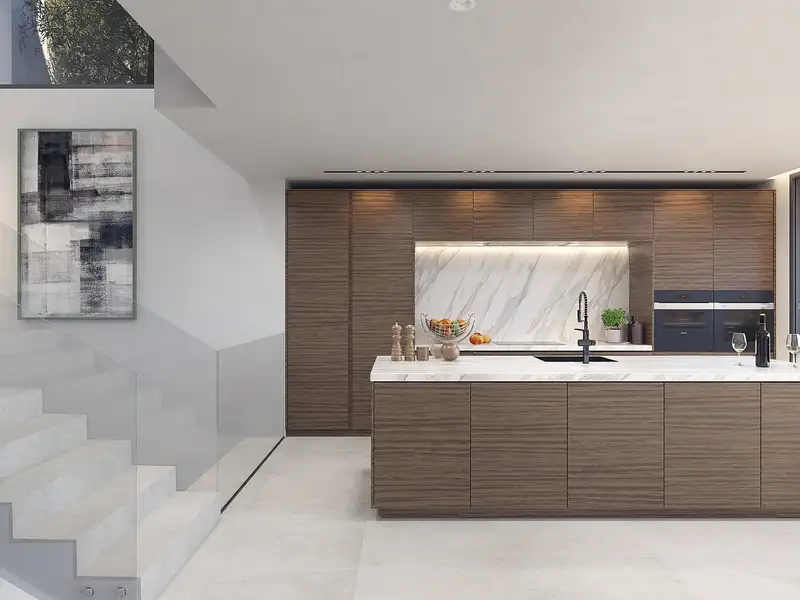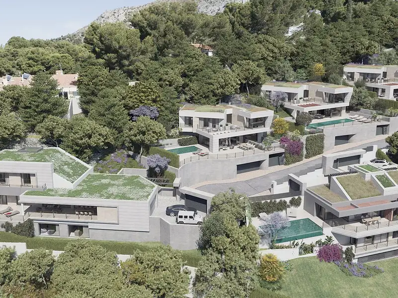 The project offers an exclusive collection of contemporary villas crafted for modern living. Each villa features open-concept living areas bathed in natural light and offers luxurious amenities such as customizable state-of-the-art kitchens with branded white goods, expansive floor-to-ceiling windows, a/c, and under-floor heating throughout the house connected to a common aerothermal system, and a basic Home automation system. Every detail has been thoughtfully considered, from the fully equipped kitchens to the entertainment rooms and private wine cellars.