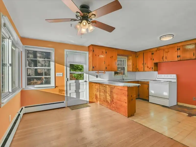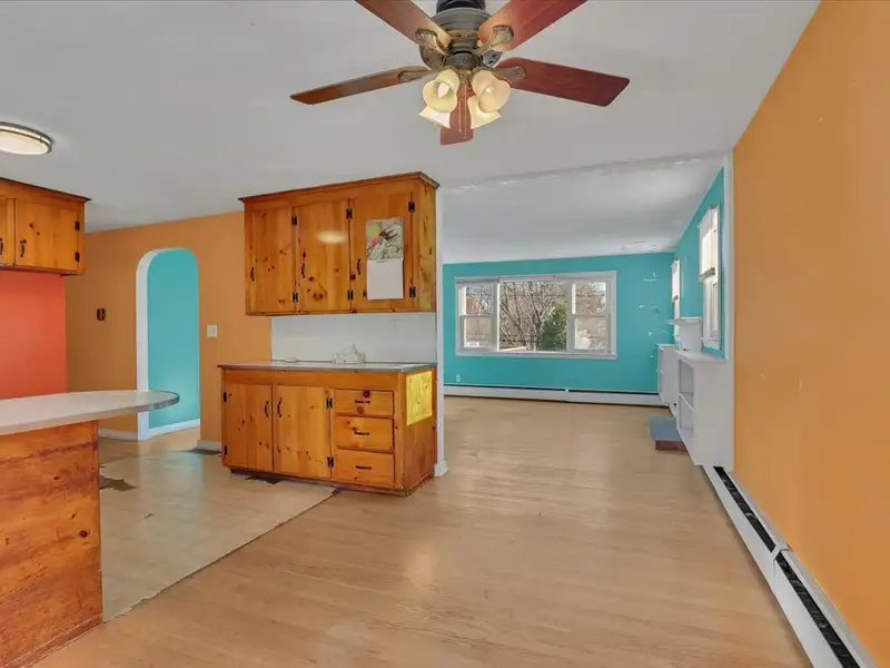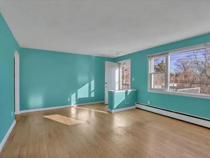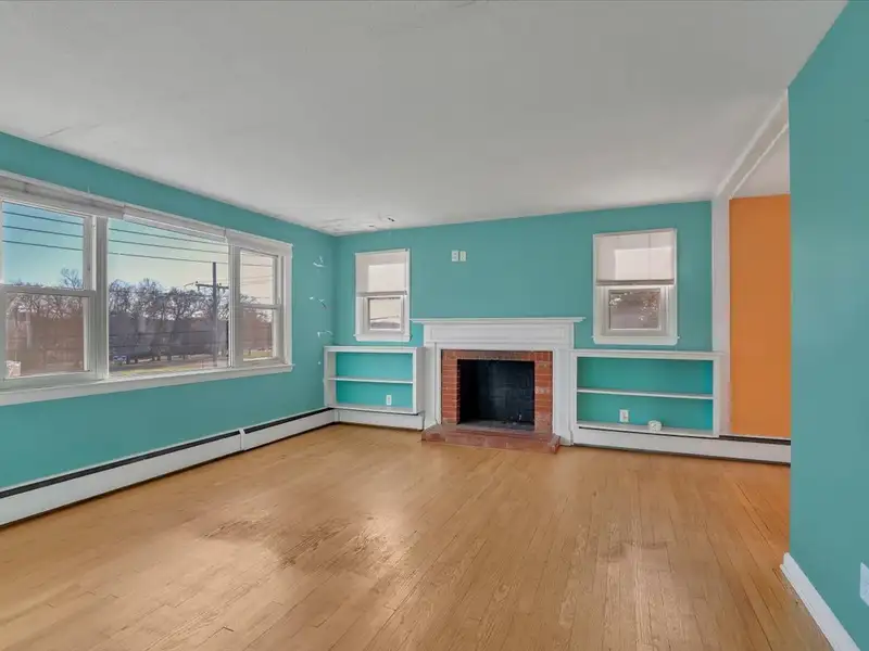 - Sun-filled living room with fireplace