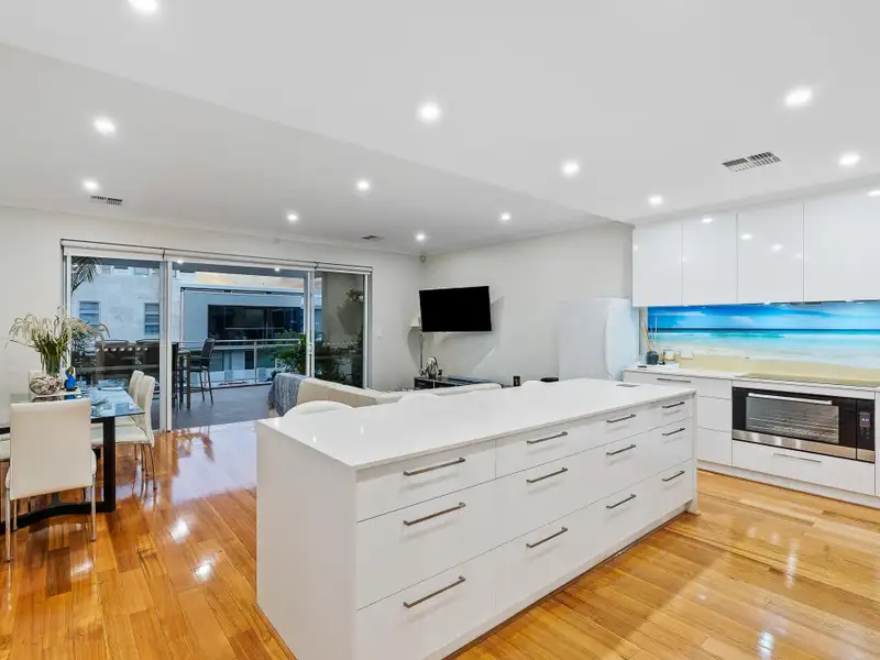 From the moment you arrive, the tone is luxe, private, and exclusive. Enter via your secure intercom and choose your entrance - elegant staircase or your very own private lift, taking you directly into a world of light, volume, and contemporary coastal charm. Soaring ceilings, statement hardwood floors, plantation shutters, and high-end designer finishes greet you with confidence and comfort, while an abundance of natural light pours through the expansive open-plan layout.