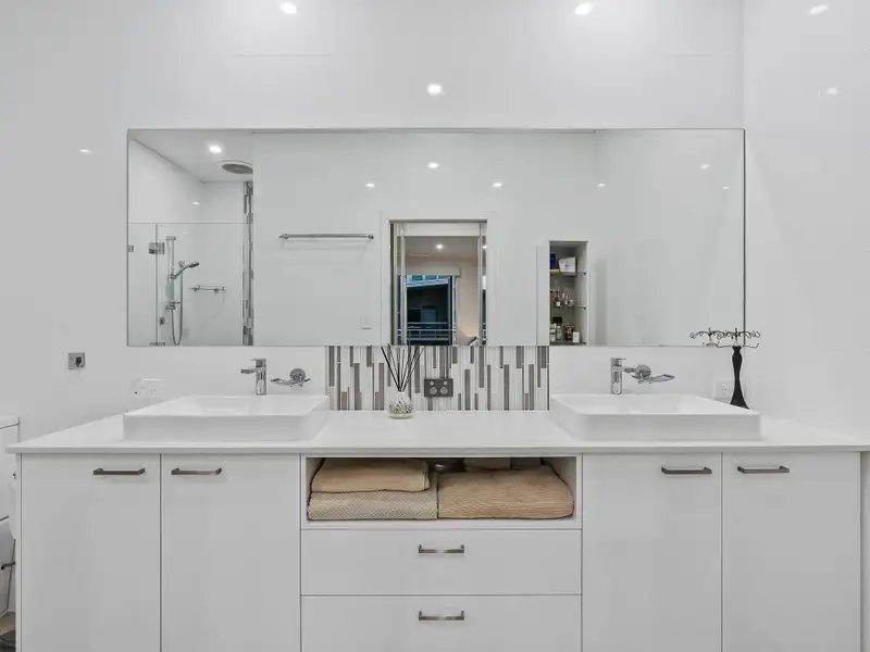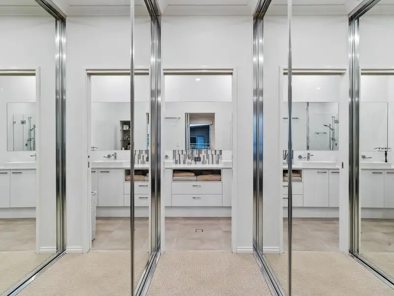 Retreat to the palatial master suite, where tranquillity and luxury go hand in hand. Featuring a 'his and hers' mirrored robe walk way through to the glamorous ensuite with twin vanities and sleek cabinetry, it's your own private sanctuary. Two more bedrooms with built-in robes and ceiling fans offer space and comfort for family or guests, while the versatile fourth bedroom easily transforms into a second living area, home office, or games room - the flexibility here is unmatched.