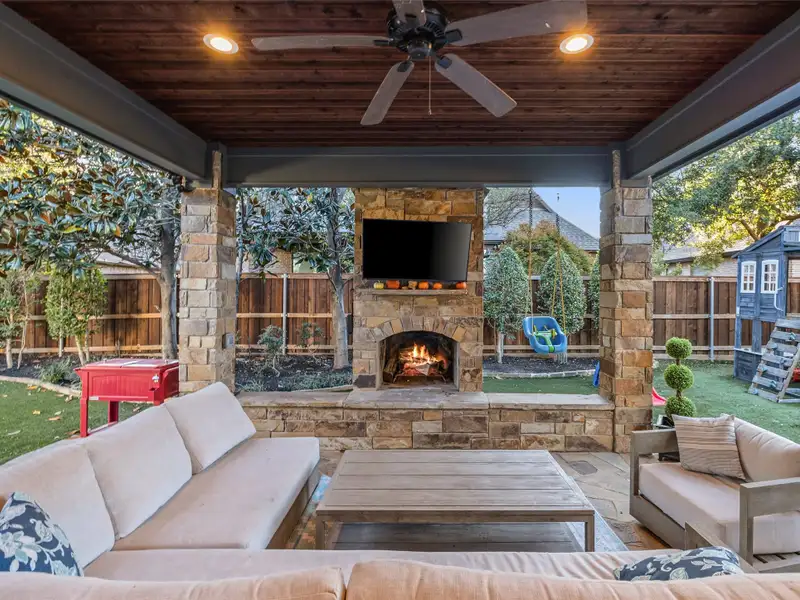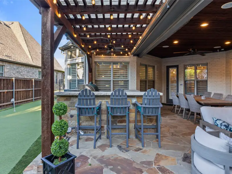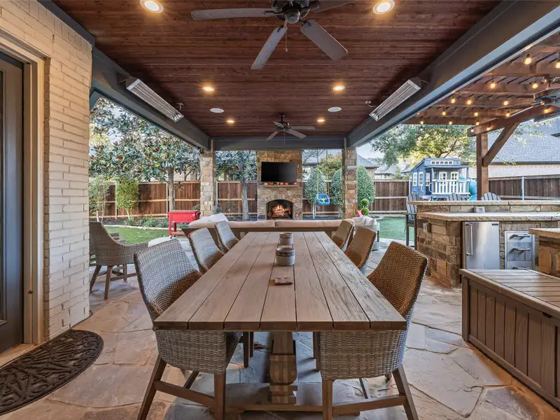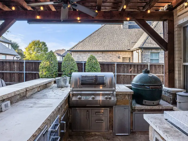 - Backyard with covered patio and outdoor kitchen