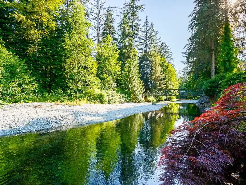 - Nearly 2.5-acre landscaped backyard with forest retreat