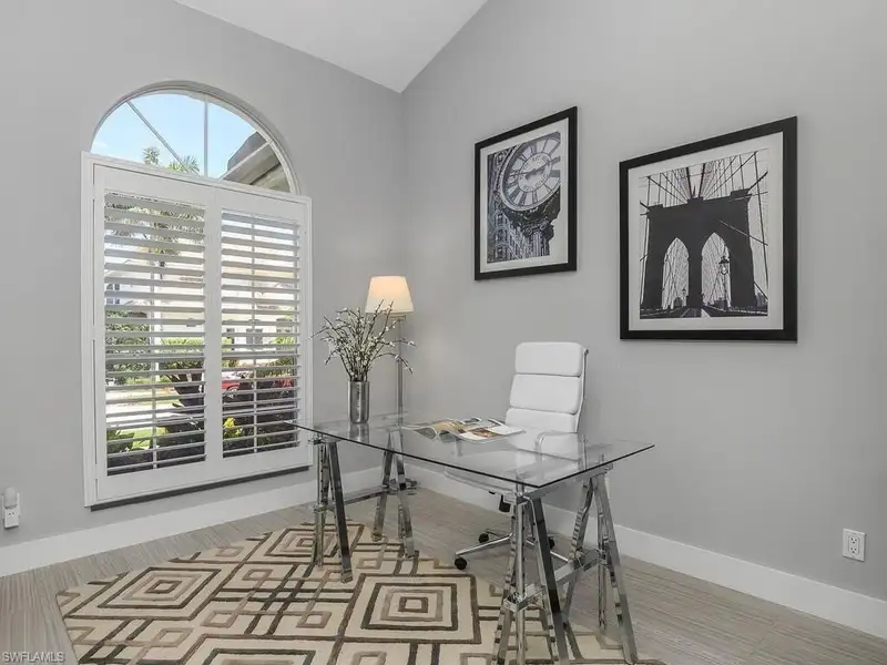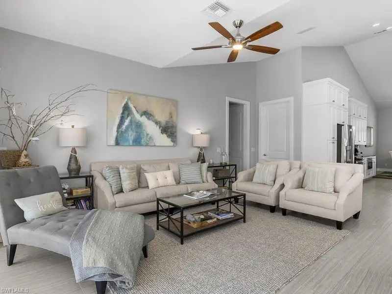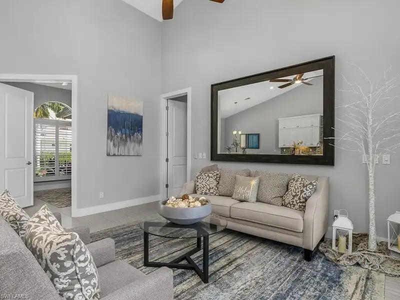 - Open floor plan with high ceilings