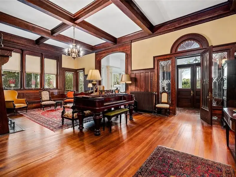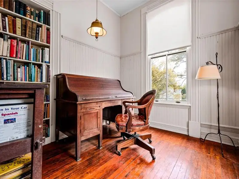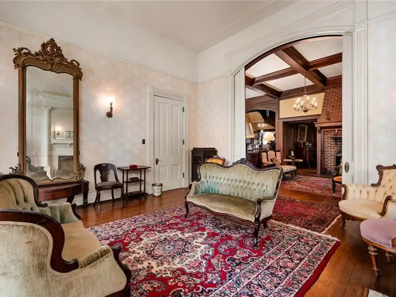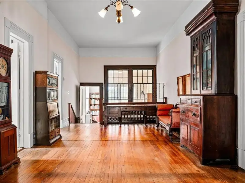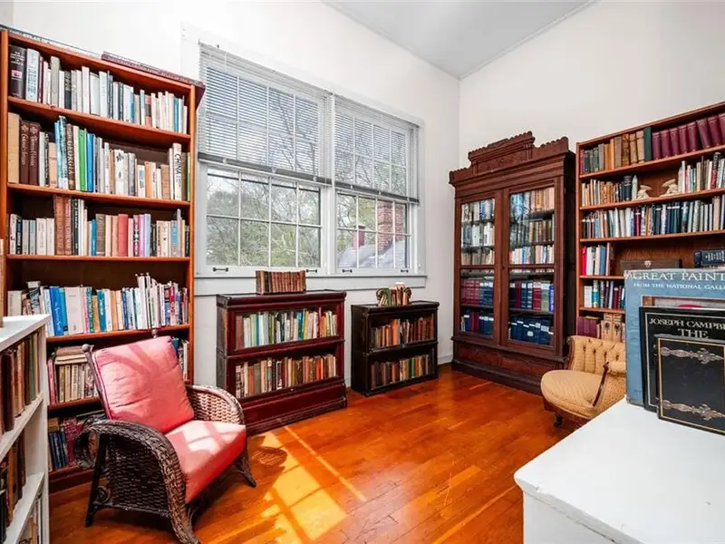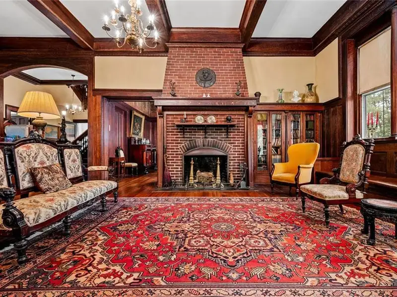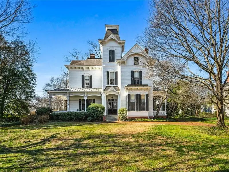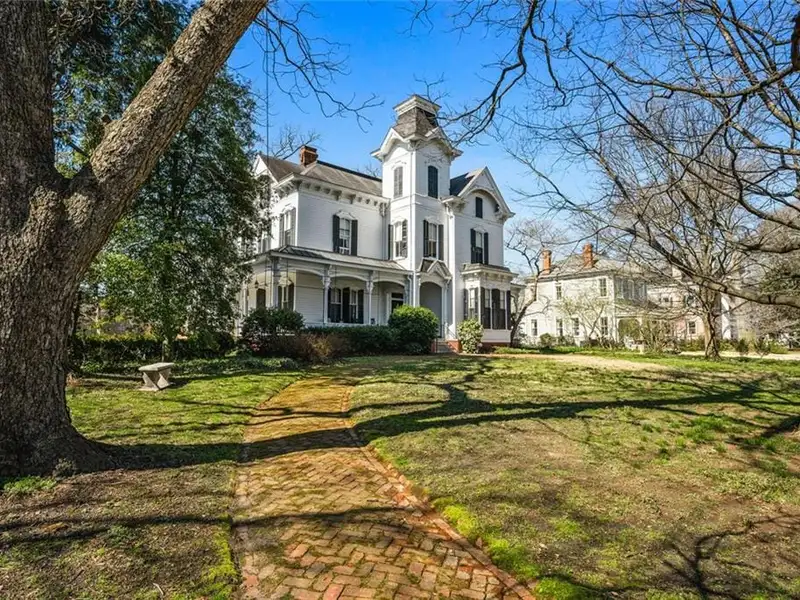 Welcome to Tower Oaks, the grandest Victorian home in Historic Marietta, now offered for sale! This distinguished Italian-style villa, built circa 1882, is the only residence of its kind in the city. With 5 bedrooms, 4.5 bathrooms, and impeccable architectural details, this historic estate offers a rare opportunity to own a piece of Marietta's rich heritage. The stately entry hall features leaded glass doors and sidelights that fill the space with natural light, illuminating the intricate woodwork and gleaming hardwood floors that extend throughout the home. The main living area boasts a magnificent brick fireplace, one of eight fireplaces in this home. Quarter-sawn oak paneling, egg-and-dart molding, and built-in window seats and bookcases add character and elegance. A striking feature of Tower Oaks is the built-in grandfather clock, seamlessly crafted by Judge Samuel Hale Sibley using repurposed wood and Civil War artifacts, including cannonballs and a bayonet. This unique piece of history reflects the home's timeless grandeur. Pocket doors lead from the living room to the charming parlor, complete with a bay window and inviting window seat. The 13-foot ceilings enhance the sense of space and sophistication. The expansive dining room is ideal for entertaining, with large windows, a stunning canvas frieze capturing Kennesaw Mountain, and a built-in sideboard offering ample storage. The breakfast room connects to the kitchen with a convenient passthrough counter. Nearby, a spacious utility room with a half-bathroom serves as a versatile space for laundry, flower arranging, or storage. Enjoy your morning coffee on the sun porch, surrounded by windows and bathed in natural light. Two spacious bedrooms and adjoining bathrooms with vintage marble sinks are located on the main level. Ascend the solid walnut staircase to the upper floor, where you'll find a dedicated office, three additional bedrooms, two full bathrooms, and a versatile great hall. Two bonus rooms offer the perfect opportunity for a home office, nursery, or extra guest space. Outdoor surroundings are equally impressive. Relax on the wraparound porches and admire the lush boxwoods, vibrant flower gardens, scuppernong arbor, and camellia bushes. The expansive front and back yards are ideal for hosting gatherings or enjoying peaceful evenings. The house has driveway access from both Kennesaw Avenue and Maple Avenue, where the entrance is flanked by a picturesque stone wall. A circular driveway provides ample parking in the back. A massive historic barn features two garage stalls, a large workshop, and a loft for additional storage. Located just blocks from the Historic Marietta Square, 285 Kennesaw Avenue offers convenient access to charming shops, local dining, and cultural attractions. This iconic Italian-style villa is more than just a home - it's a living piece of Marietta's history. Schedule your private tour today and experience the timeless elegance of Tower Oaks!