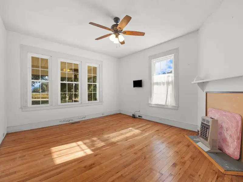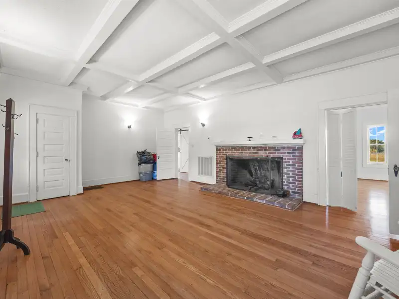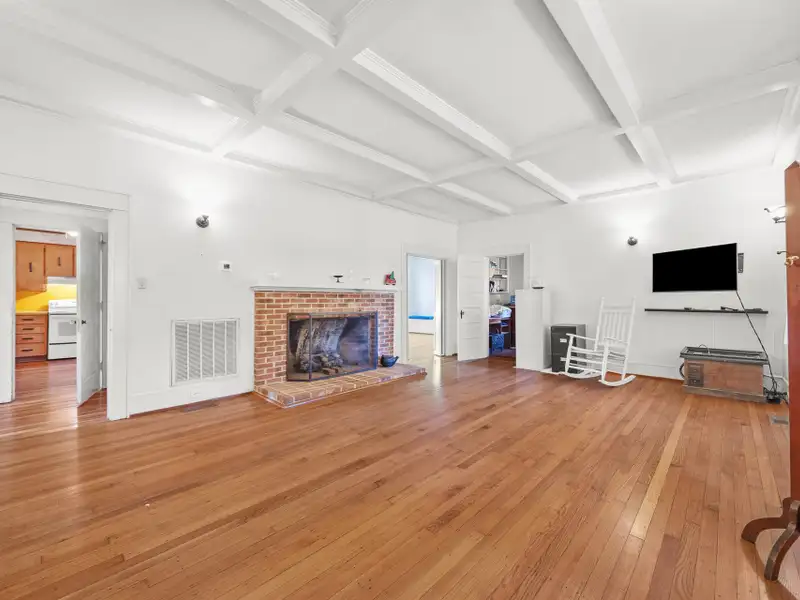 - Wood-burning fireplace in living room