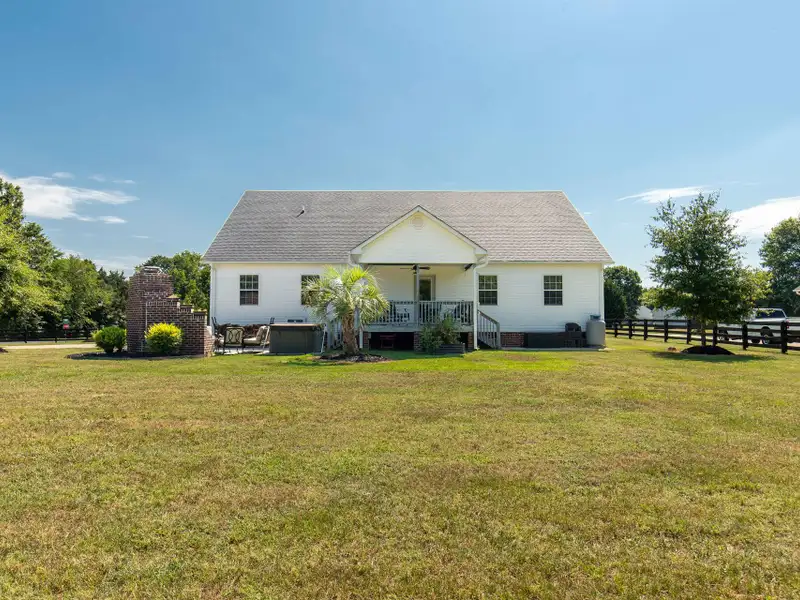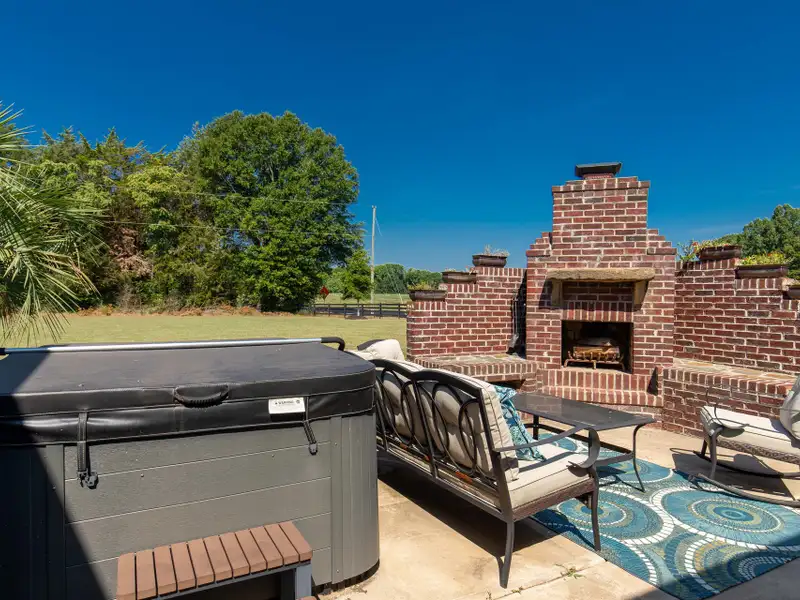 - Covered rear patio with spa and fireplace