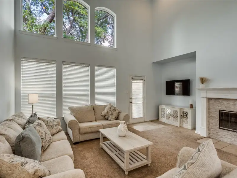 - Stacked stone fireplace