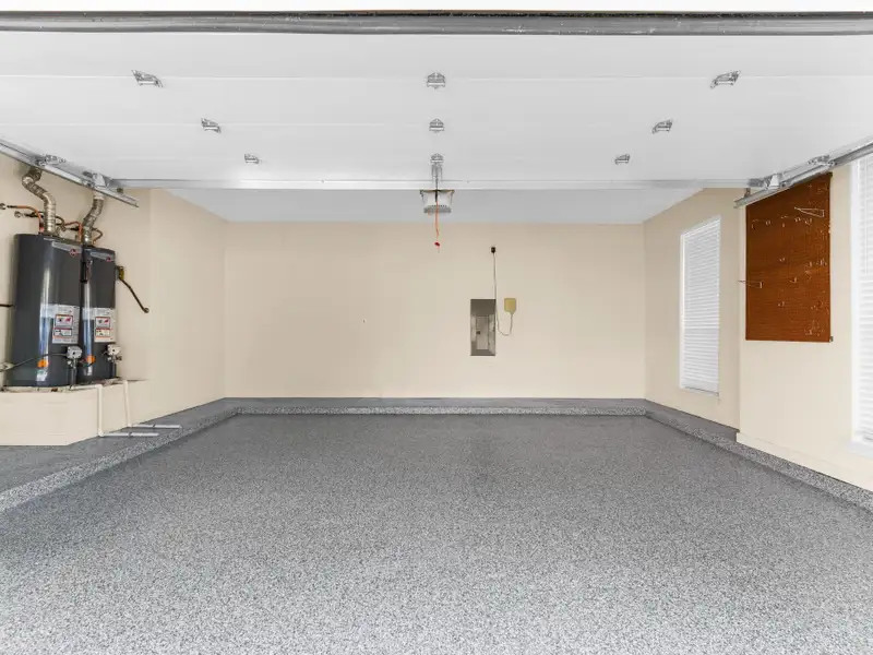 - Freshly painted epoxy garage floor