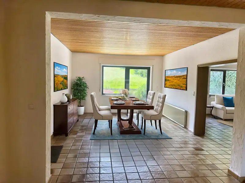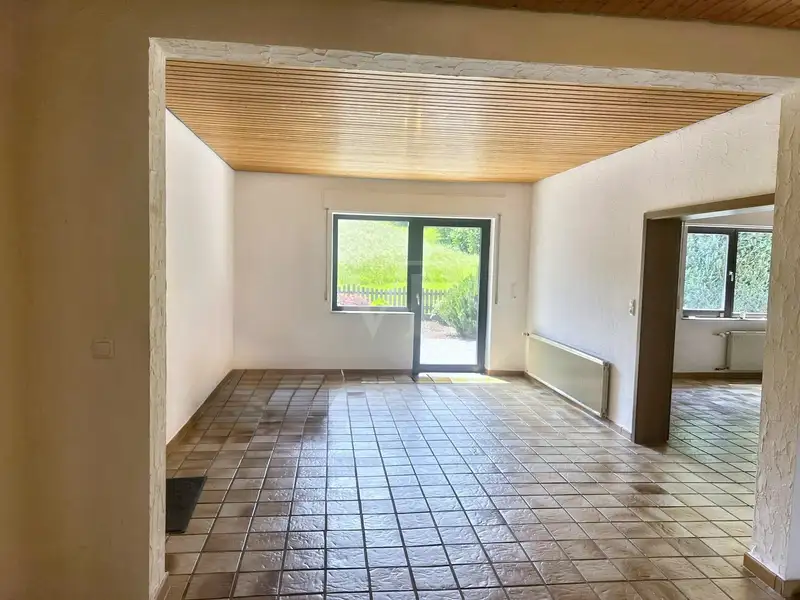In a quiet and immediate location on the edge of the Weyrer Wald and Hahnenberg nature reserve and yet close to the city, this charming and generously proportioned condominium on the first floor of a well-kept 5-party house awaits you. With approx. 165 square meters of living space, approx. 107 square meters of usable space, two terraces and a versatile room in the basement, this apartment offers you "living with house character" - ideal for couples and home office users.