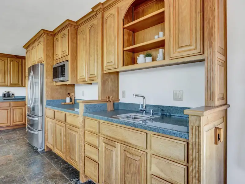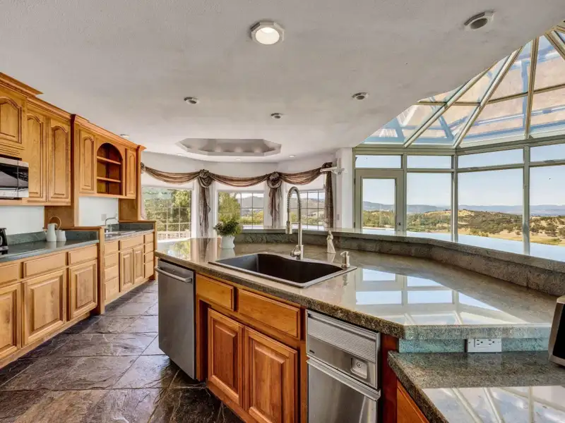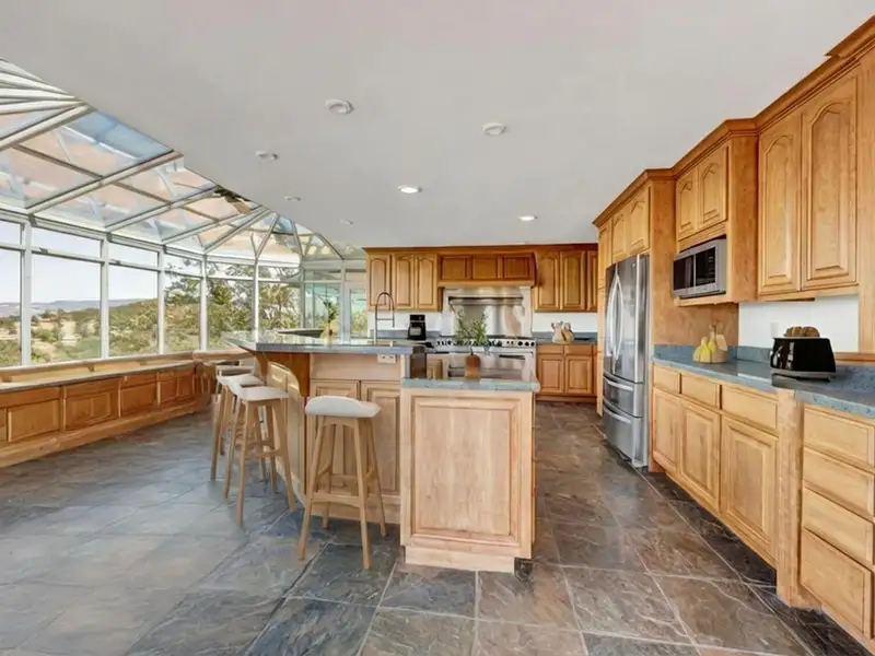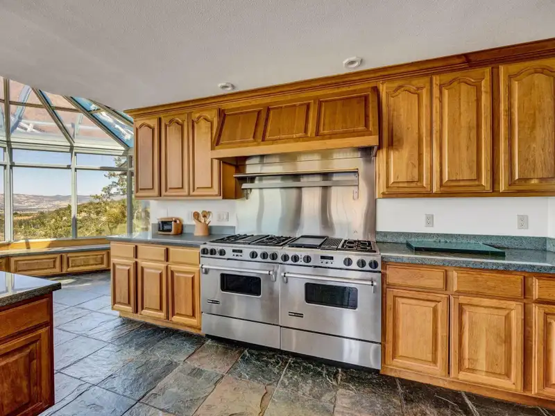 - Kitchen with cherrywood cabinets and dual fuel oven