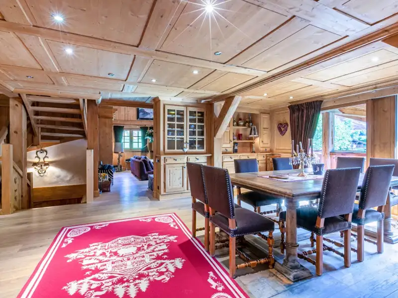 Chalet in the heart of the Mont d'Arbois / Côte 2000 plateau, just 2 km from the ski slopes, with ideal sunshine and panoramic views. With 295 m² of living space (total floor area 365 m²), it boasts a beautiful living room with high ceilings in the lounge, a fireplace and access to a large south-facing terrace and a garden with uninterrupted views of the mountains. Spacious dining room, kitchen and second TV lounge. The 6 en suite bedrooms are spread over 3 levels: On the top floor, the master bedroom with dressing room and bathroom with shower, plus another en suite bedroom on the same level. A double bedroom on the living area level. Three additional bedrooms on the garden level. A relaxation area with jacuzzi, sauna and hammam as well as a double garage and two outdoor parking spaces complete this property. 2,100 m² of land with planning permission to extend or build a new chalet of between 250 m² and 300 m² with basement.