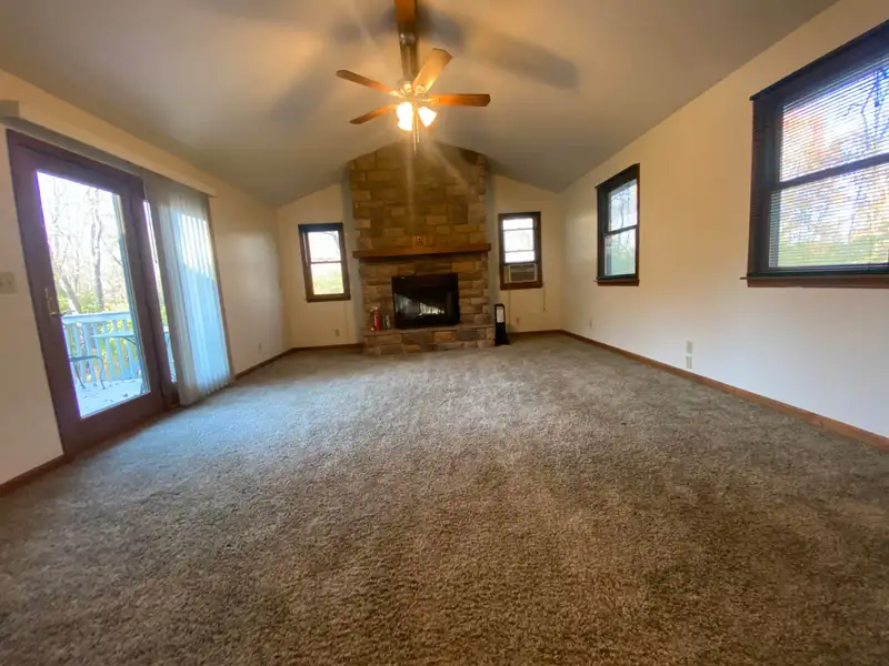 - Large family room with stone wood fireplace