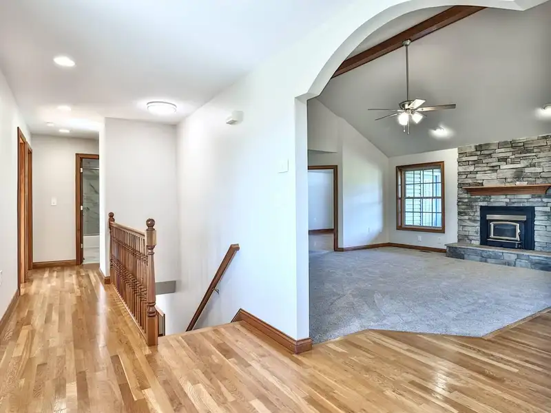 - Open floor plan with hardwood floors