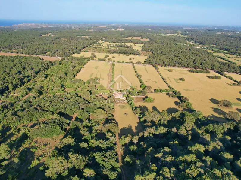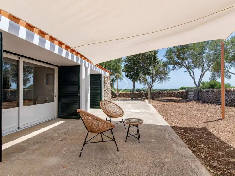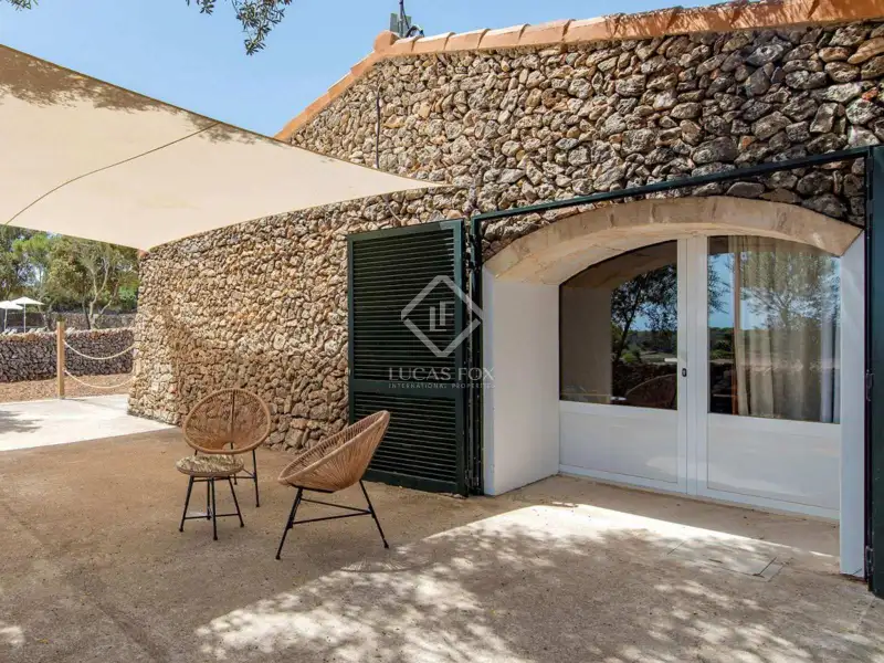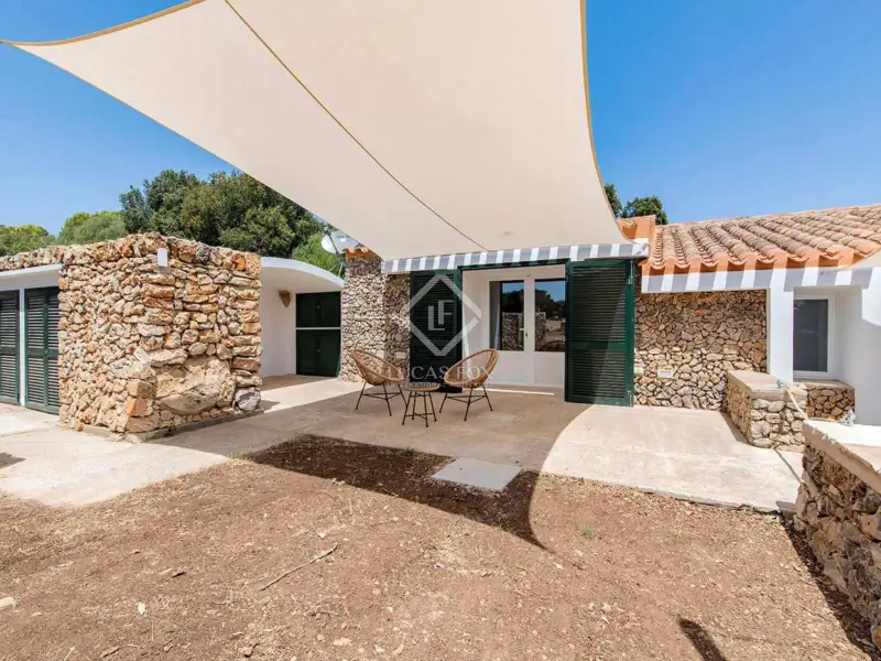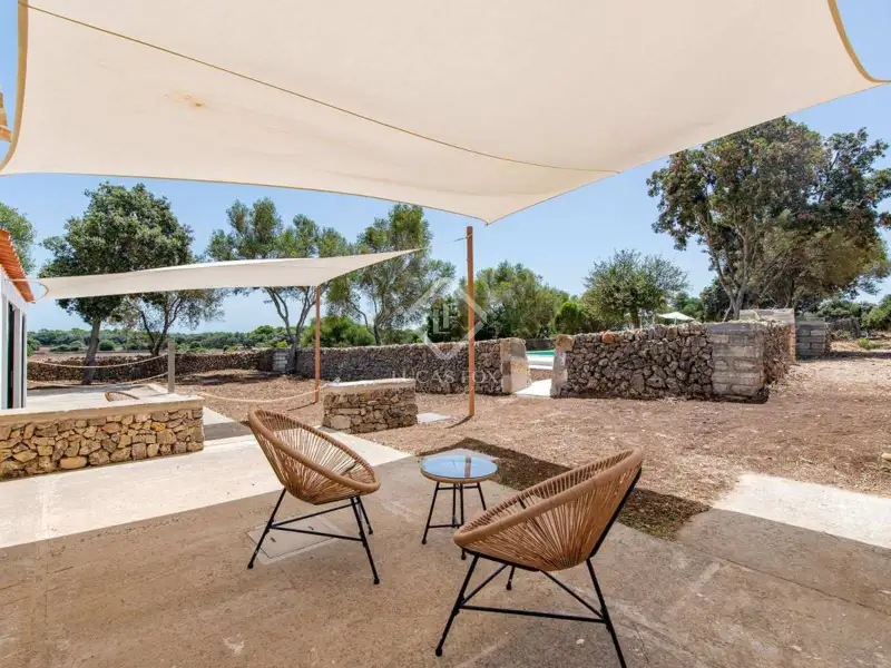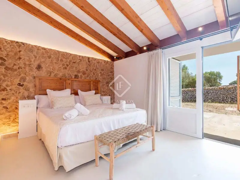 This modern rural house of 150 m² built on a plot of 499,494 m² is located in the countryside area that belongs to the town of Mercadal, located in the middle of the island. Its privileged location allows access to the famous beaches of the north of the island on foot or on horseback, if you do not want to take the car. It connects with the famous Camí de Cavalls and thanks to its 50 hectares of its own land, it offers the possibility of having horses and thus being able to go on excursions to the north of the island.